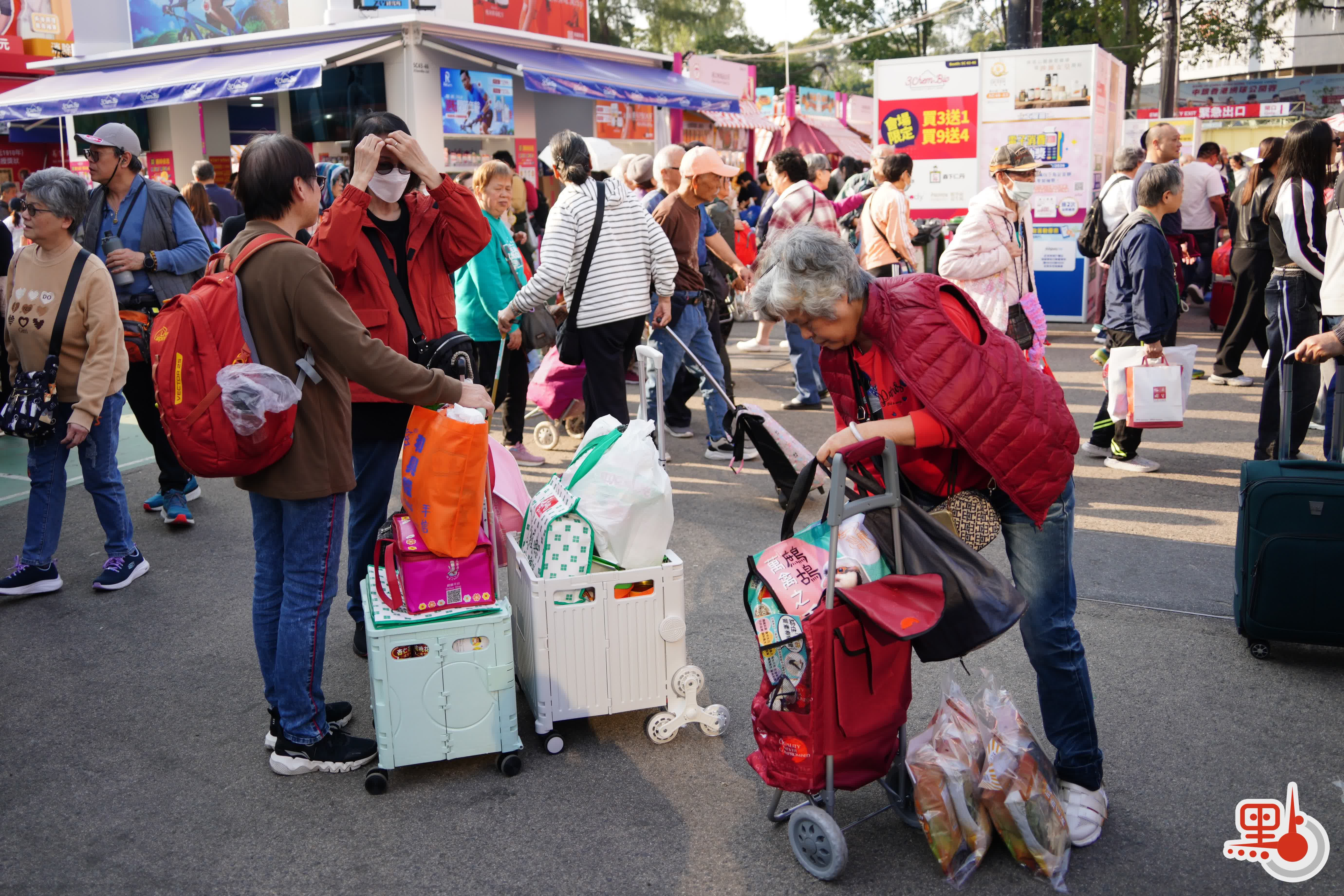 (有片+多圖)工展會尾日商家推優惠吸客 市民拖篋帶袋掃貨