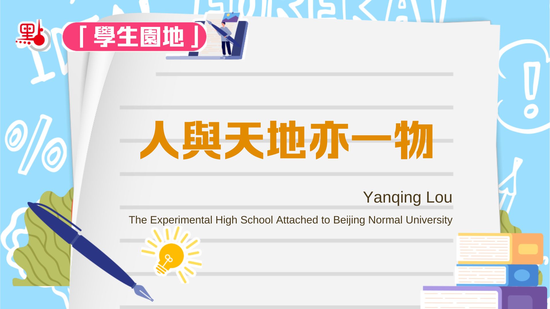 學生園地|《人與天地亦一物》——Yanqing Lou