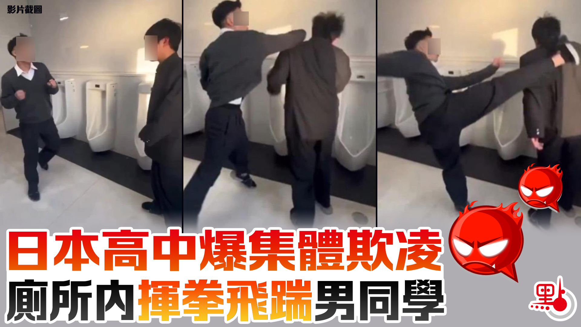 【點新聞報道】日本栃木縣一所高中爆發霸凌事件,網上瘋傳一段影片,只見一名男學生在廁所不斷揮拳、飛踹另一名男同學,周遭其他同學則不斷歡呼,引發社會公憤。事件驚動警方緊急介入,栃木縣知事對事件表示極度震驚,並要求相關部門公開調查結果。