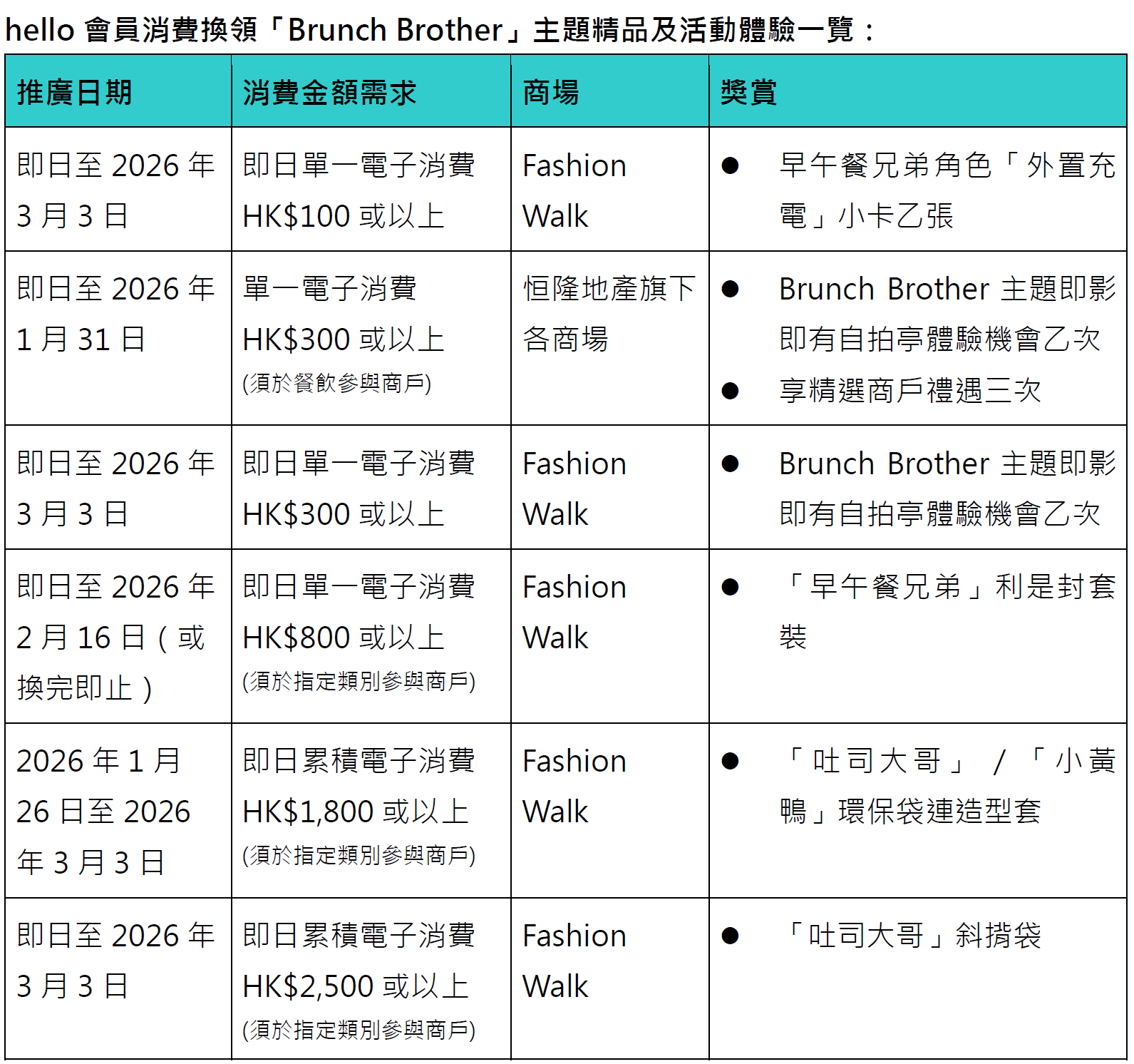 恒隆地產旗下商場Fashion Walk聯乘韓國人氣文創角色「Brunch Brother」,打造「BRUNCH」into the New Year潮玩新年主題活動,將韓式軟萌暖意帶到銅鑼灣潮流街區。一眾可愛討喜的Brunch Brother角色已換上全新喜慶賀年春裝,驚喜進駐百德新街及食街一帶的六大新春主題打卡點,即日起至2026年3月3日與大家共迎馬年!