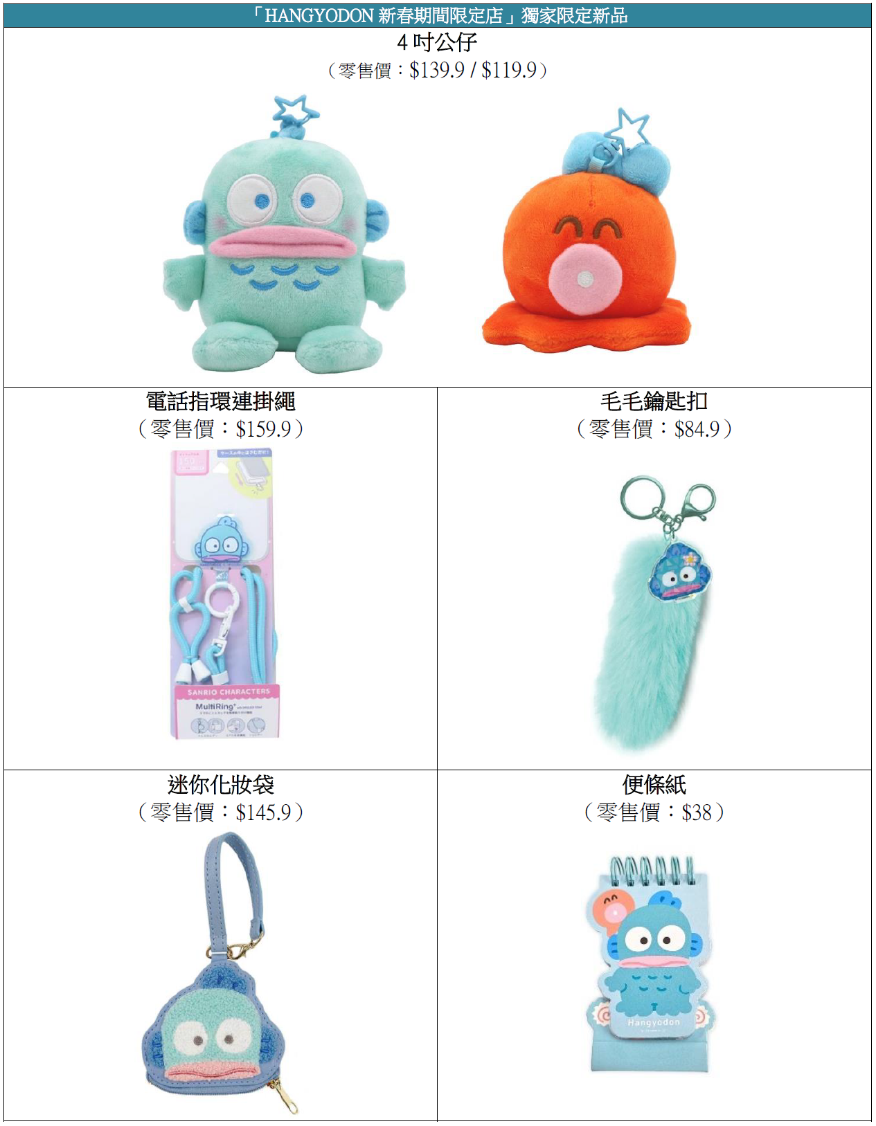 此外,商場二樓天幕廣場設有「HANGYODON新春期間限定店」,必搶10款獨家人氣新品及多款日本限量精品,同場更匯集逾200款及人氣Sanrio 新春精選商品,各位粉絲不能錯過良機,把心儀好物通通帶回家,迎接新一年新氣象!