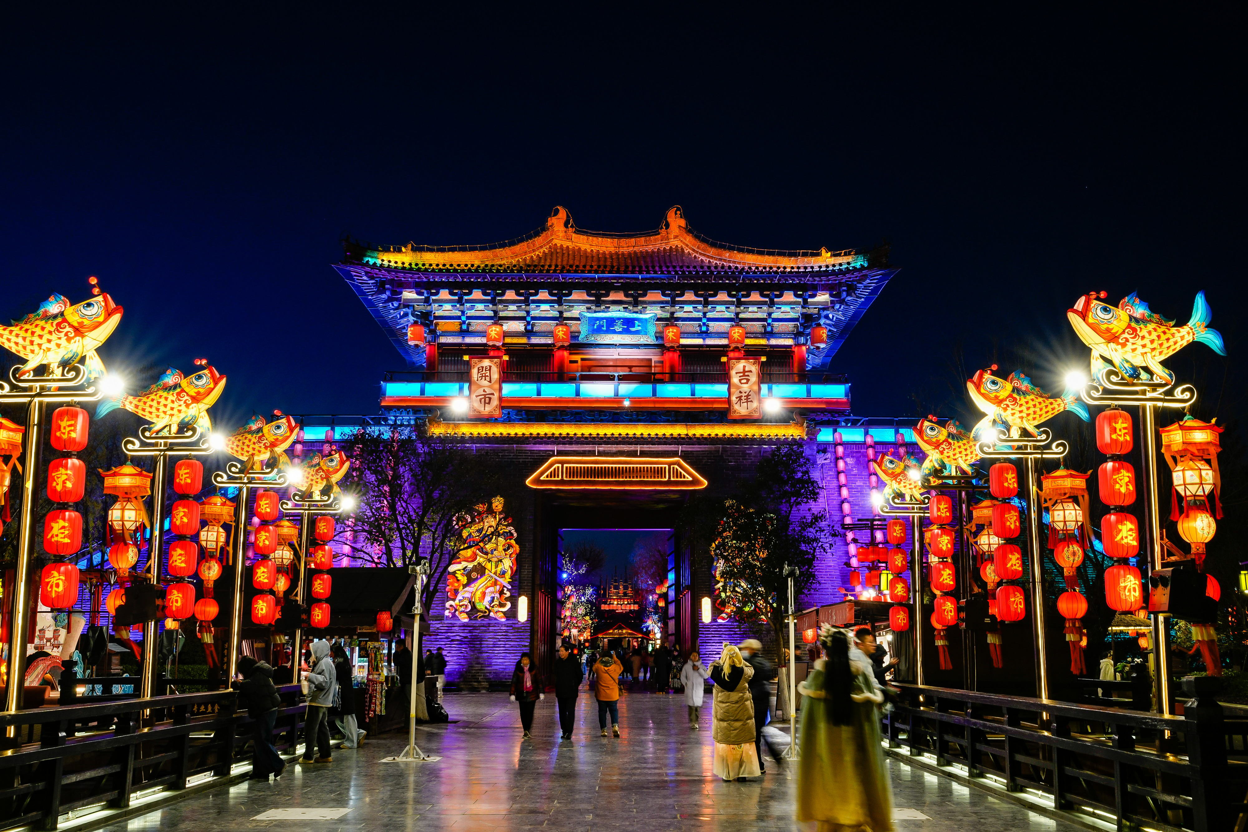 展現宋代文化的主題公園清明上河園是河南省的著名景區之一,它依據北宋著名畫家張擇端所繪的《清明上河圖》複製打造而成。園區擁有華北平原規模最大的宋代建築群,還原了畫作中熱鬧繁華的場景。園區還復原了多項民俗娛樂項目,包括女子蹴鞠、水鞦韆、鬥雞、宮廷皮影戲、水傀儡以及編鐘樂舞等。到了夜晚,還有大型表演帶人們重溫古宋時期的種種場景。