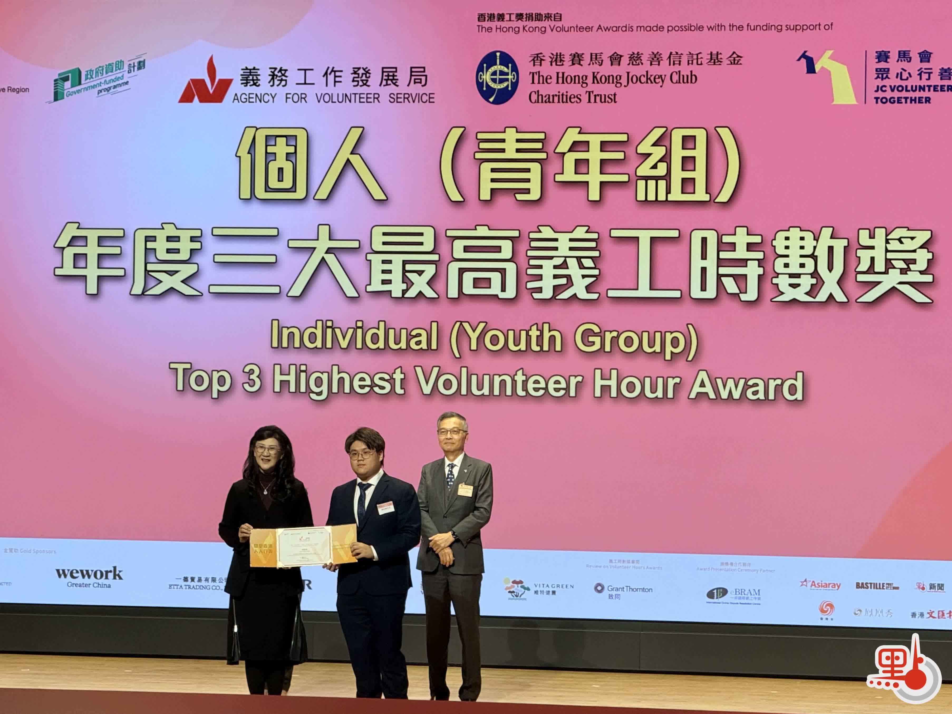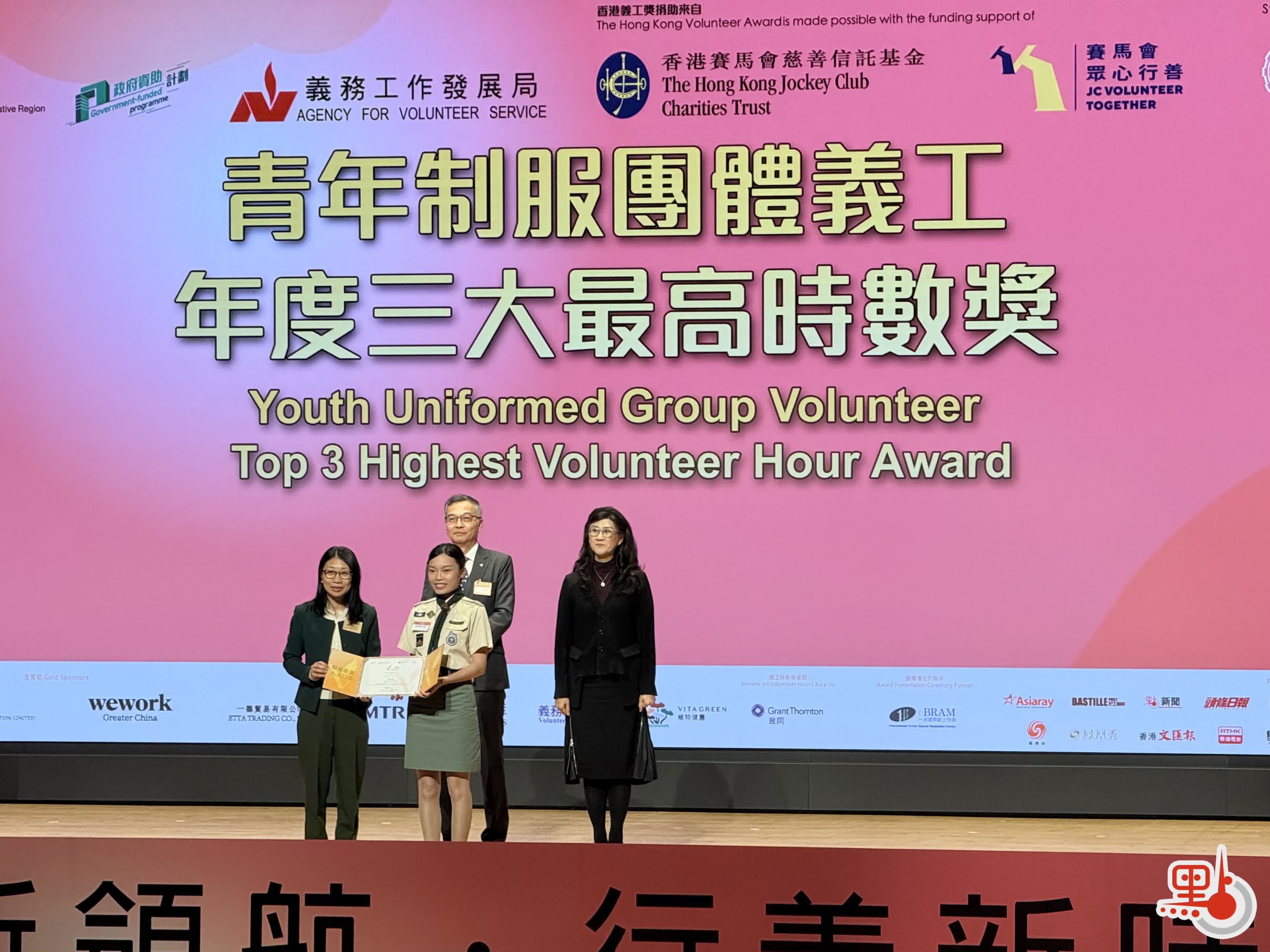 「香港義工獎」是由民政及青年事務局與義務工作發展局合辦,香港賽馬會慈善信託基金透過「賽馬會眾心行善」計劃支持的年度義工嘉許計劃,致力推動本港義工文化,凝聚社會力量。今屆頒獎禮頒發了包括傑出系列及時數系列等多個獎項,更設立「十大傑出義工」名銜及「青年制服團體義工獎(義工時數)」的獎項。