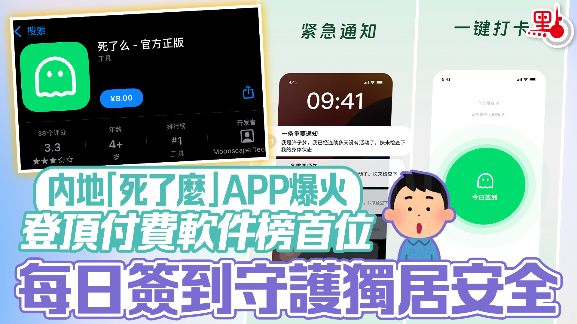 內地「死了麼」APP爆火 登頂付費軟件榜首位 每日簽到守護獨居安全