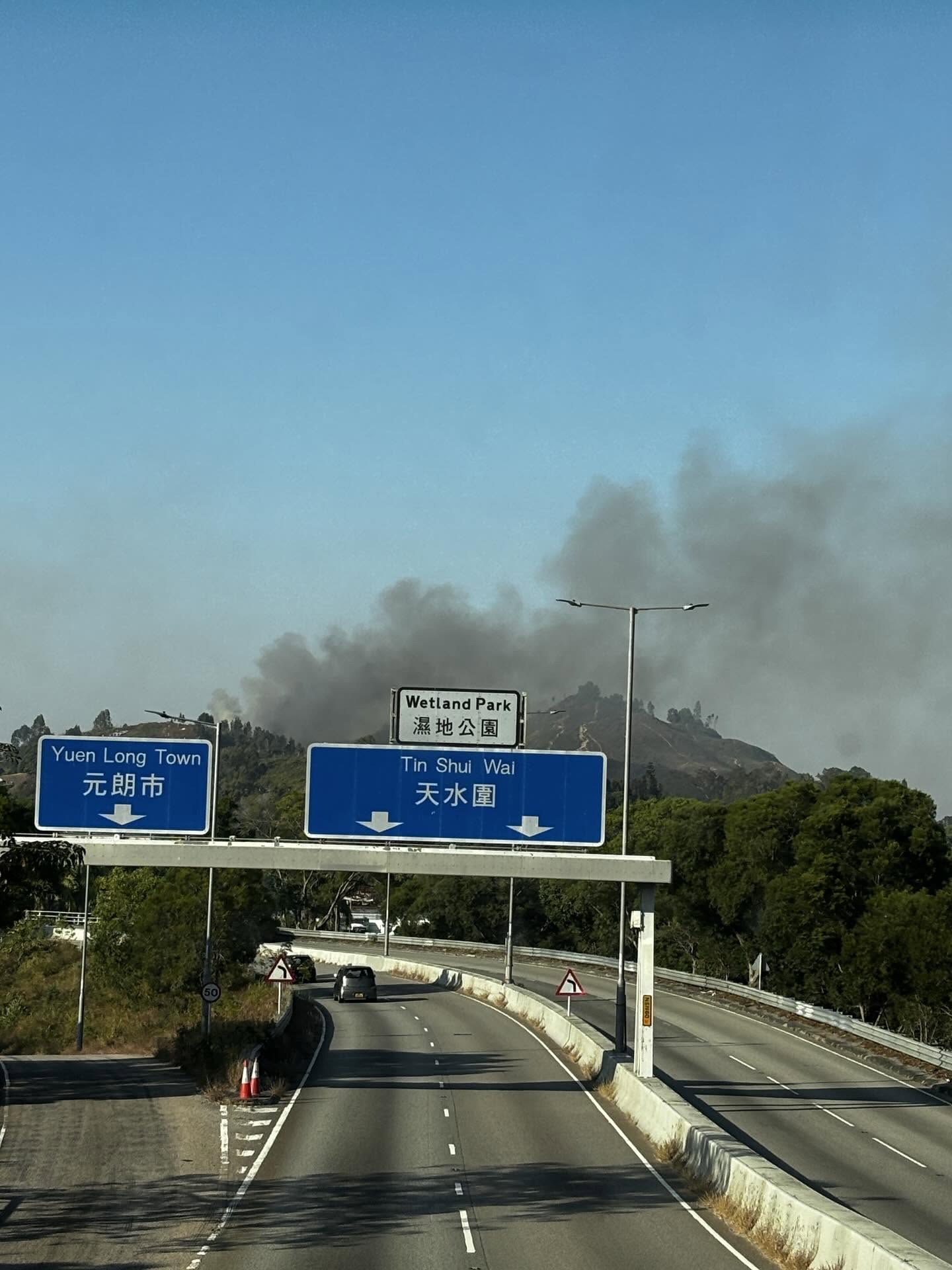 從網絡圖片及網民直播現場畫面可見,黑煙徐徐從遠處山頭冒出,席捲半空。