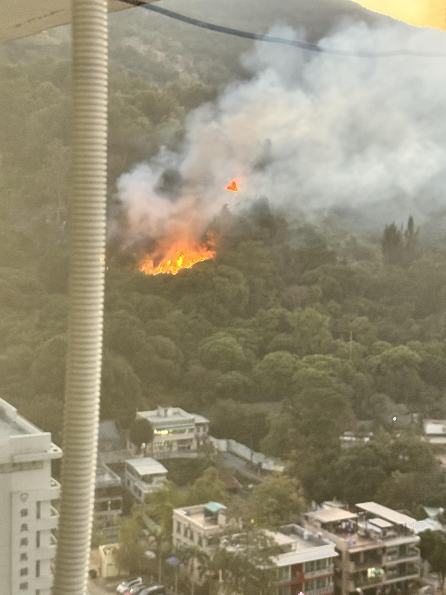 今日下午2時許,天水圍蝦尾新村對開山頭亦發生山火,一度出現3條火線,消防及飛行服務隊出動直升機撲救。