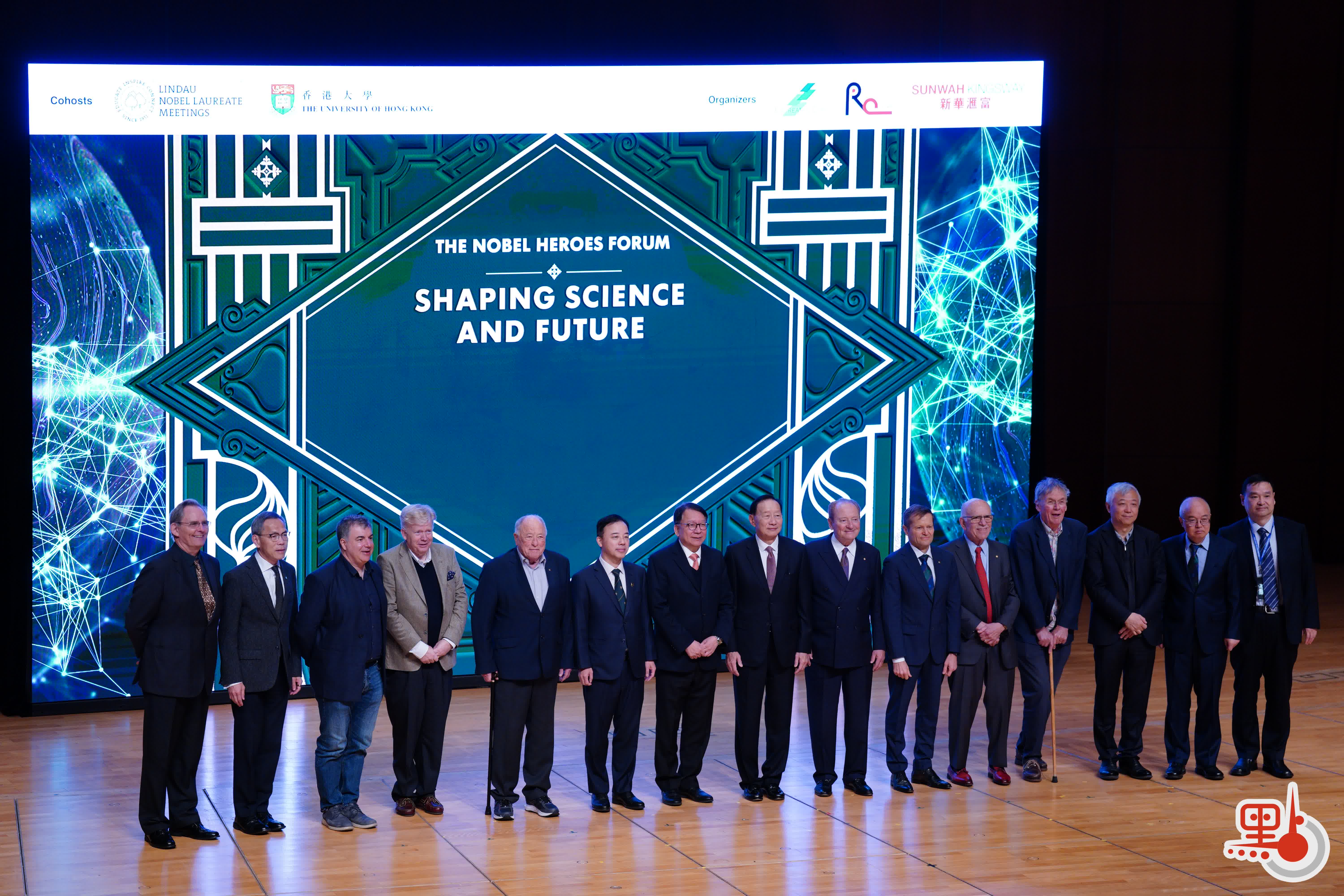 【點新聞報道】香港大學(港大)與林道諾貝爾獎得主大會(Lindau Nobel Laureate Meetings)今日(12日)聯合主辦「諾貝爾英雄論壇:引領科學與未來」。論壇於港大校園大會堂舉行,匯聚6位諾貝爾獎得主,就基礎研究如何影響未來科學、科技、健康及全球經濟展開深度對話。