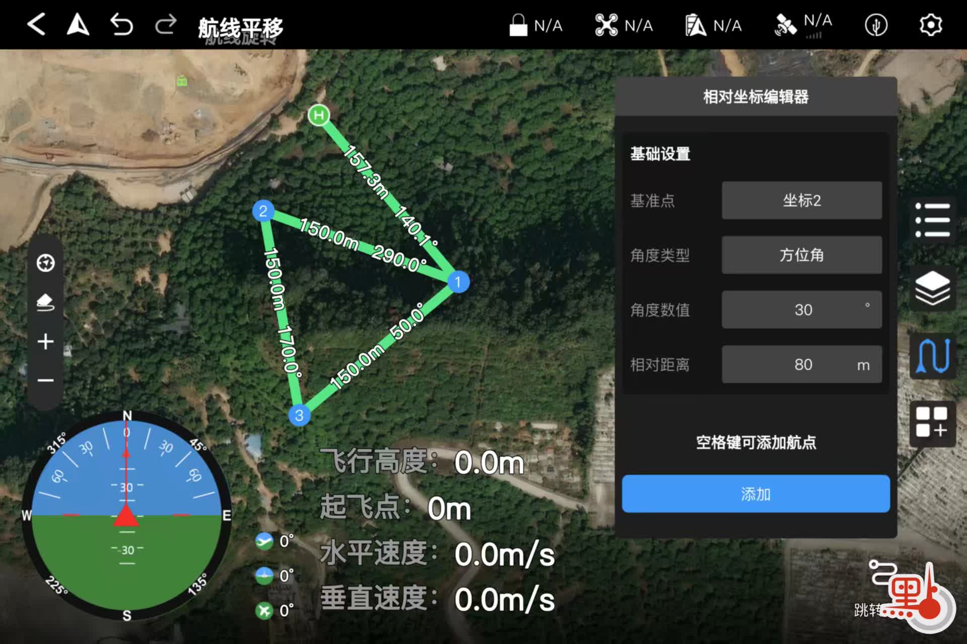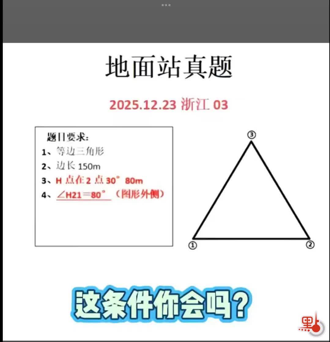 第四關是用無人機地面站軟件來畫圖。條件是6分鐘內完成考官即場提出的及試卷上的要求。這關除了考你對無人機地面站軟件的熟悉程度外,便是考你臨場是否冷靜?能否理解清楚考官用一些很繞的口吻說的要求?例如起飛點是Homepoint,簡稱H。筆者在2025年12月22日便碰上考官要求:H到1(第1個航點,即H—1)和2(第2個航點)到第1個航點(即2—1)的航向相反。那麼你如何安排這個3航點(H、1和2),那個會在中間?很多考生便因為在幾分鐘內攪不清,又或者來不及輸入其他參數便失敗了。又或者考官告訴你由2點到起飛點(H)的方向角是30度,而H、2、1這3個點形成的夾角是80度,那麼你如何畫中出來呢?如何界定2點到1點的方向角是多少度?(請參考附圖)。對方向角、夾角有了解的讀者,一定明白。這其實是中學時代都學過的三角幾何。當然,像筆者這樣的「中學雲遊僧」,那肯定是一頭霧水。