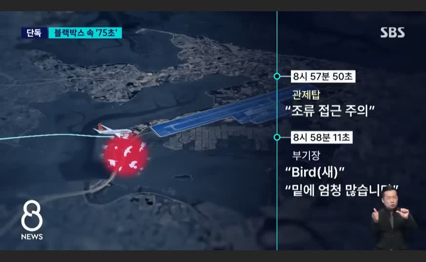根據黑匣子紀錄,在該航班準備在務安機場降落的下降過程中,塔台發出鳥群接近的警告。21秒後,副駕駛發現一群鳥,並報告說下方鳥的數量眾多。事故調查委員會分析,此時接近跑道的白眉鴨數量約為5萬隻。