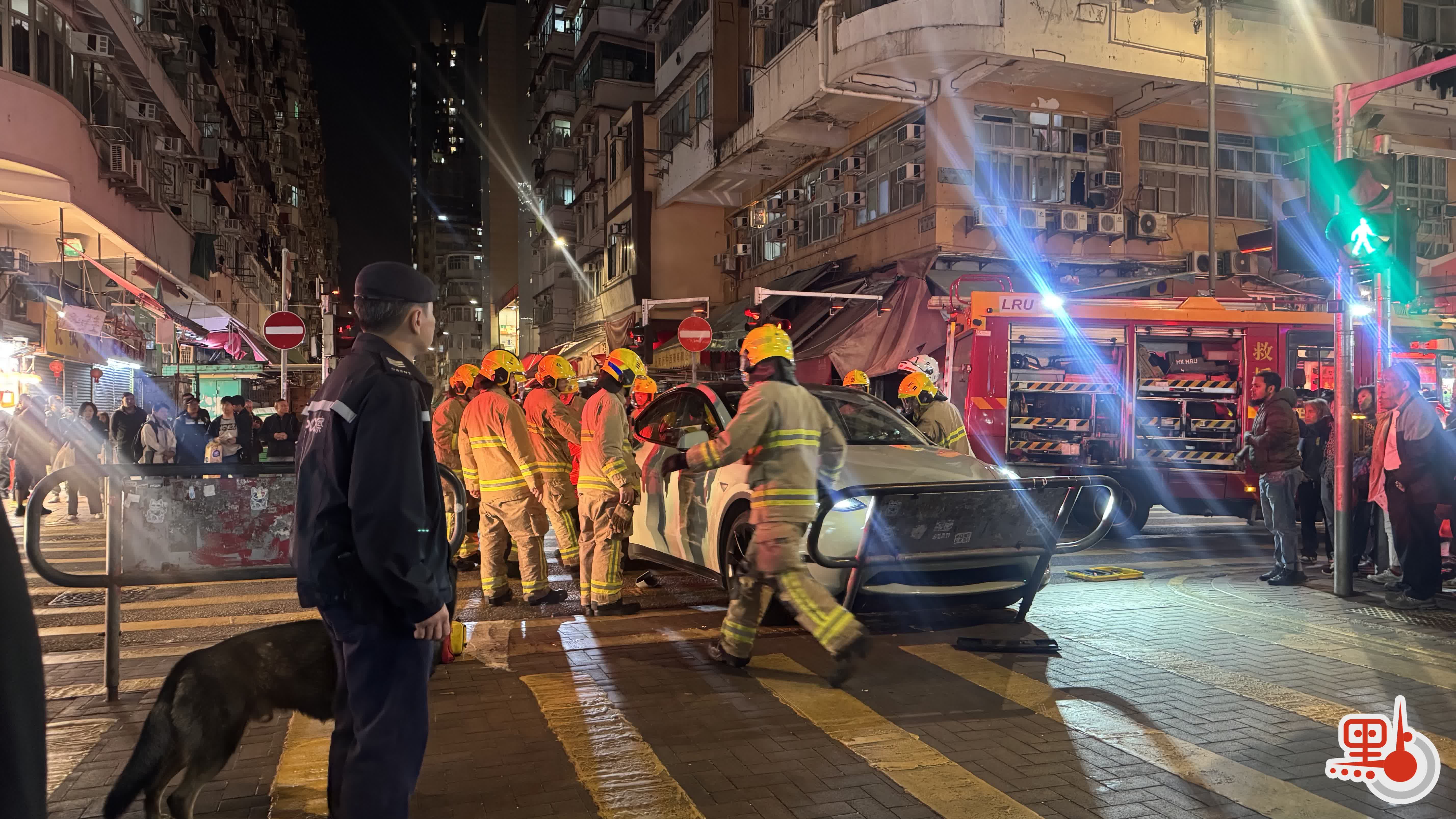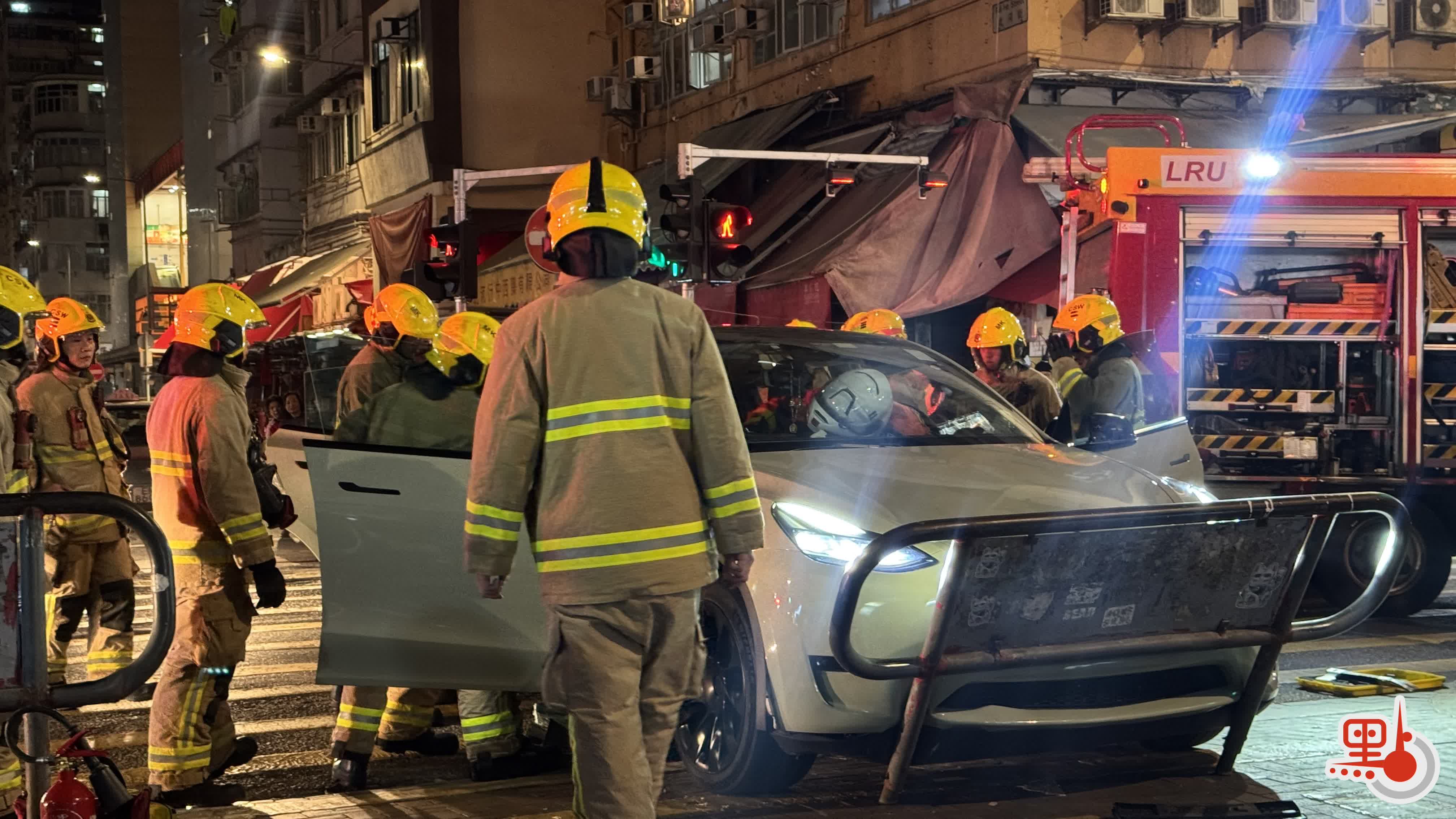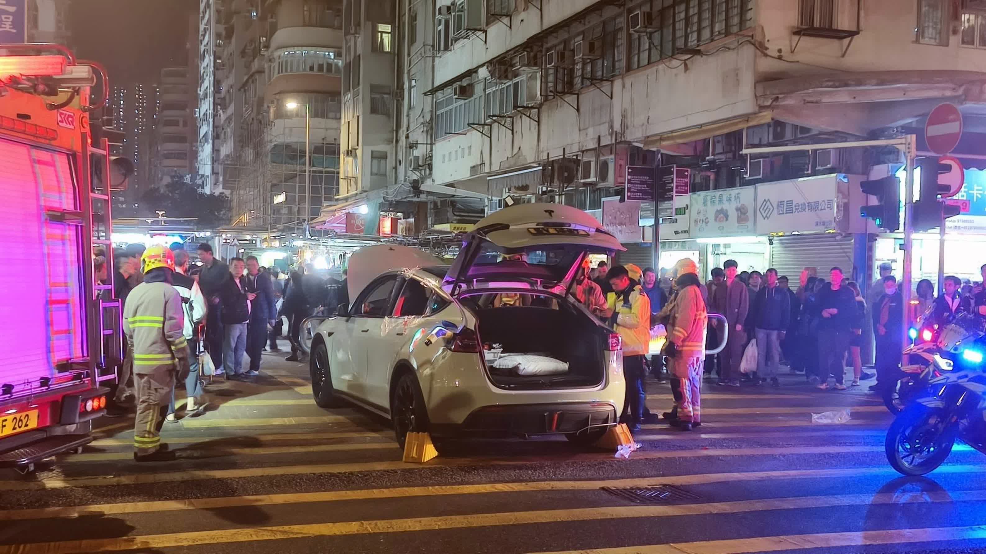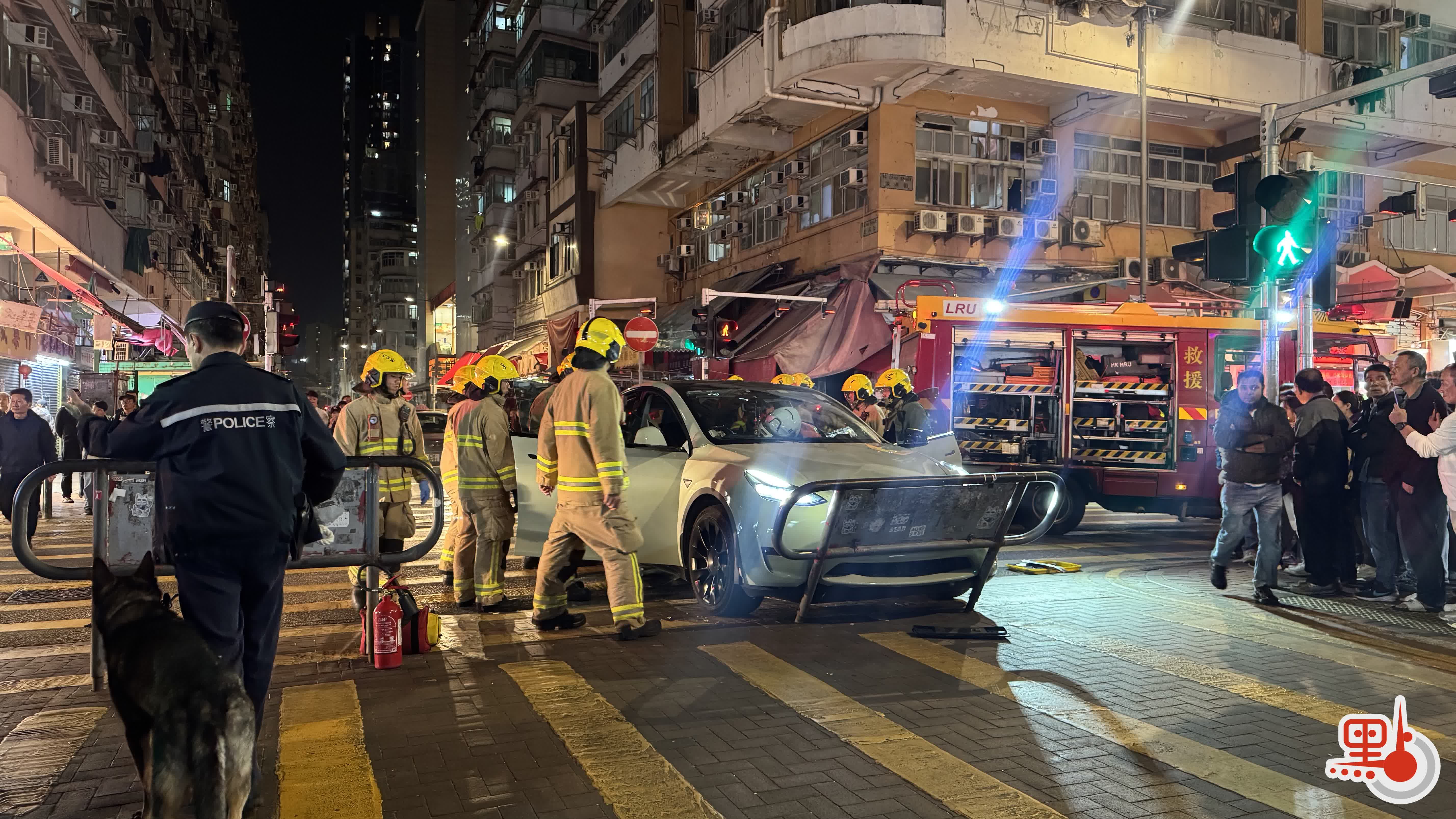 (有片+多圖)深水埗Tesla司機疑駕駛途中突猝死 撞欄險衝入行人專用區