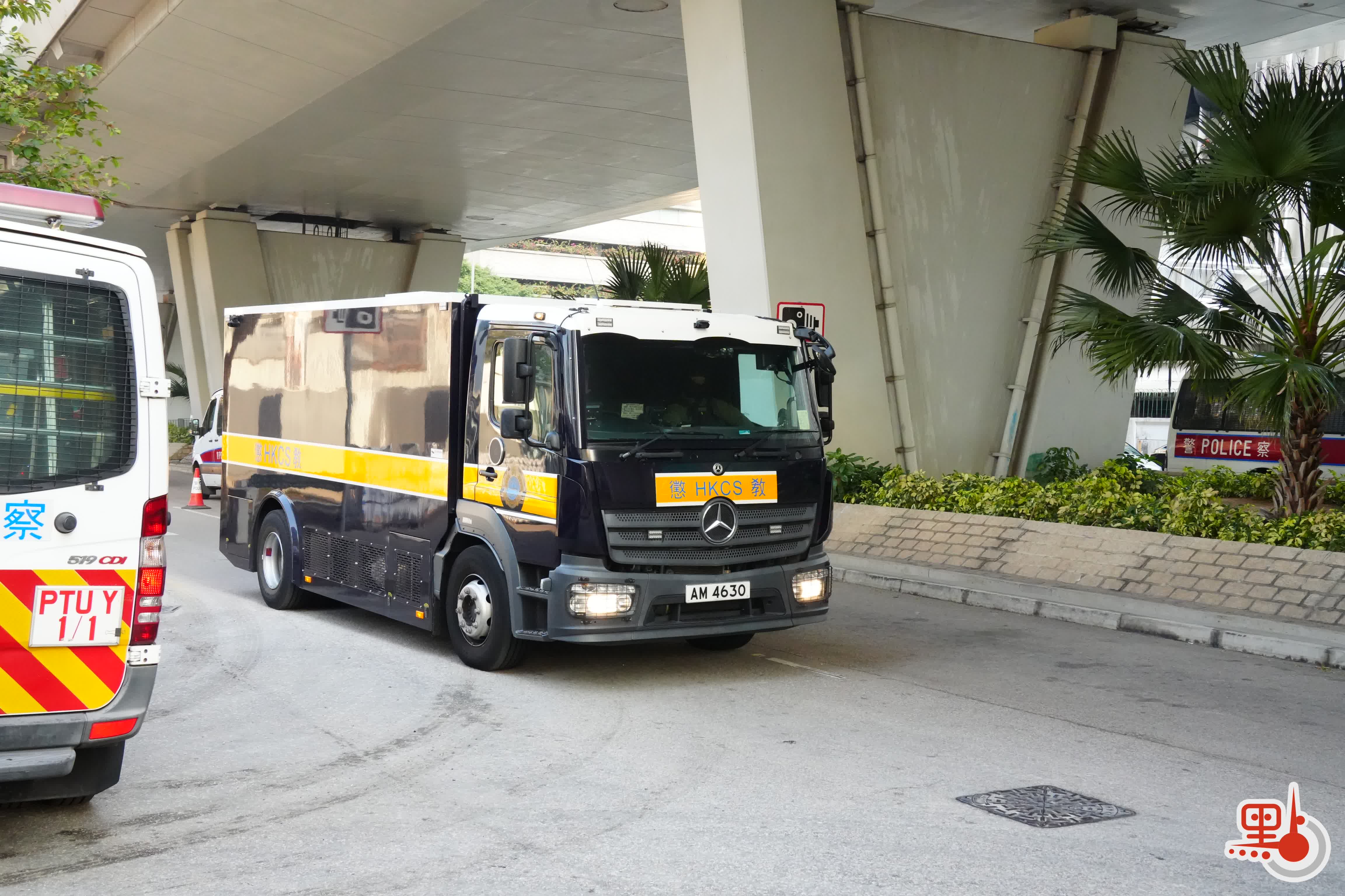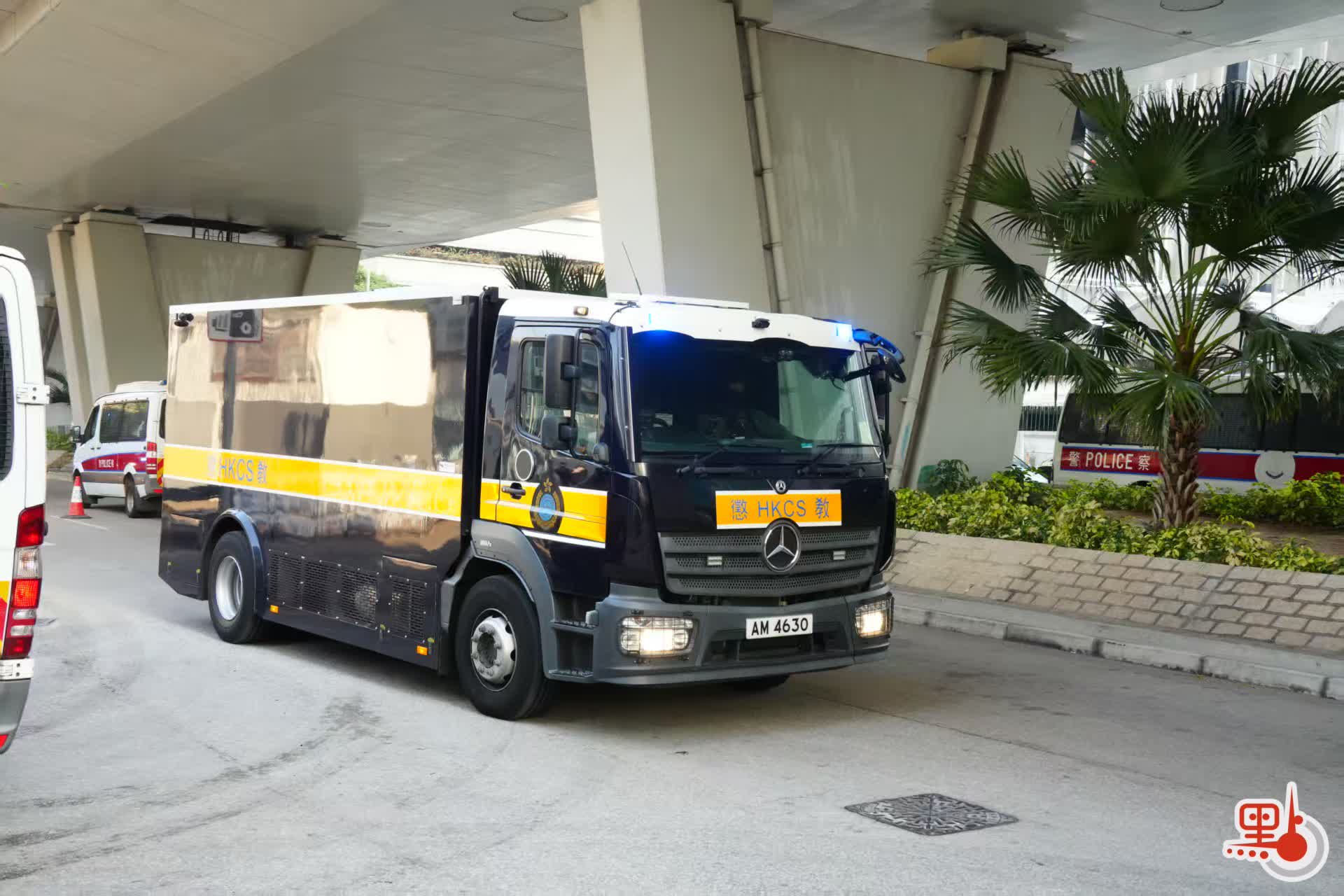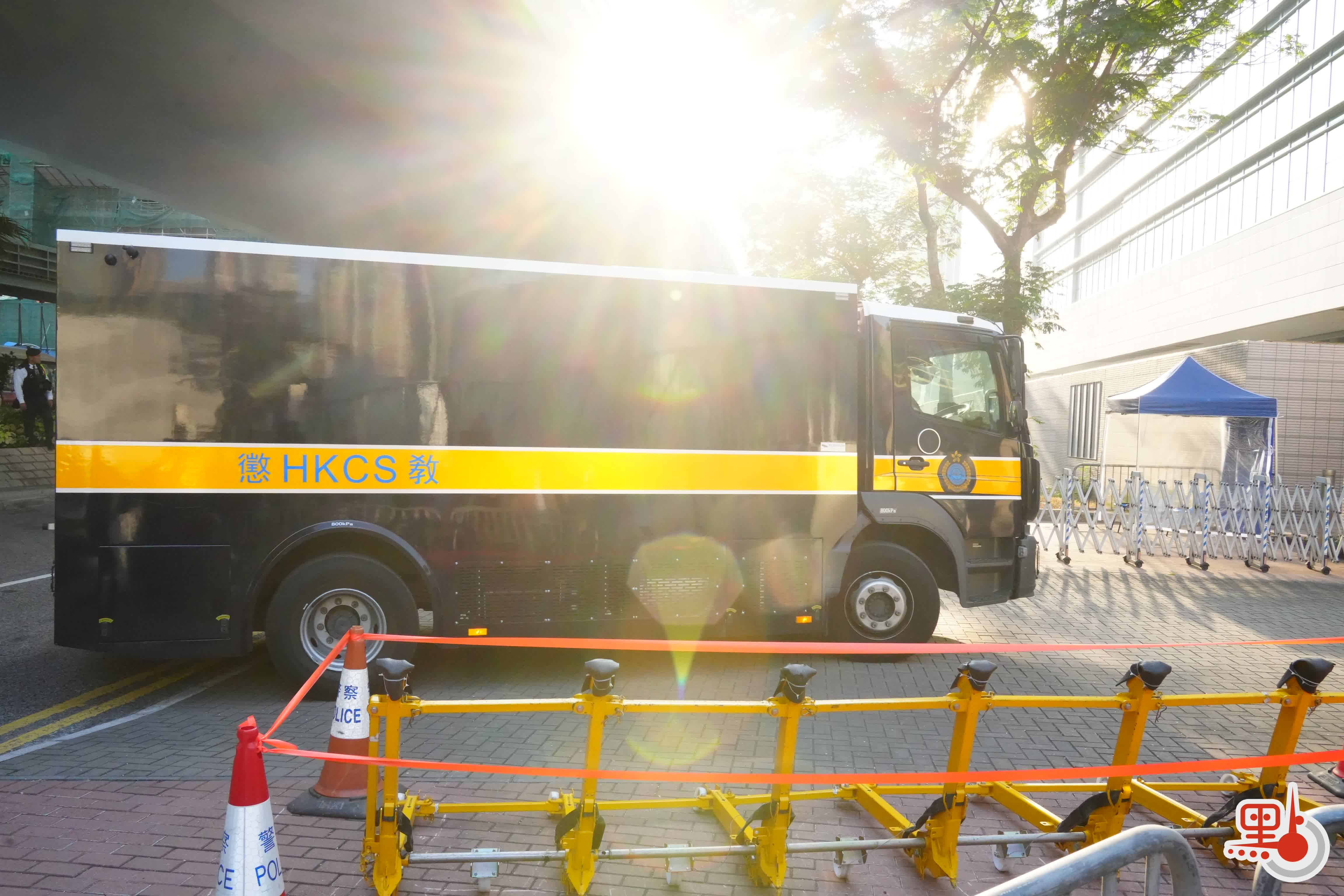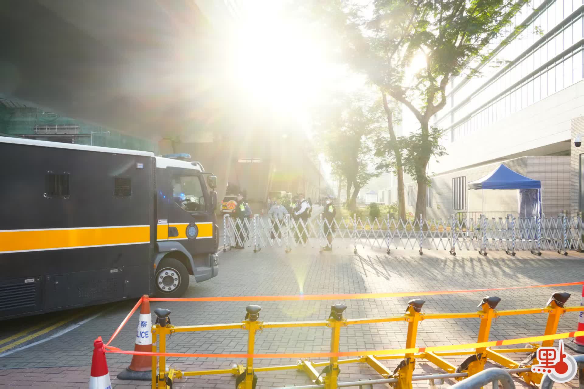 上午8時半左右,載有黎智英的「鐵甲威龍」囚車抵達西九龍裁判法院(暫代高等法院),並且有反恐特勤隊隊員持槍戒備。