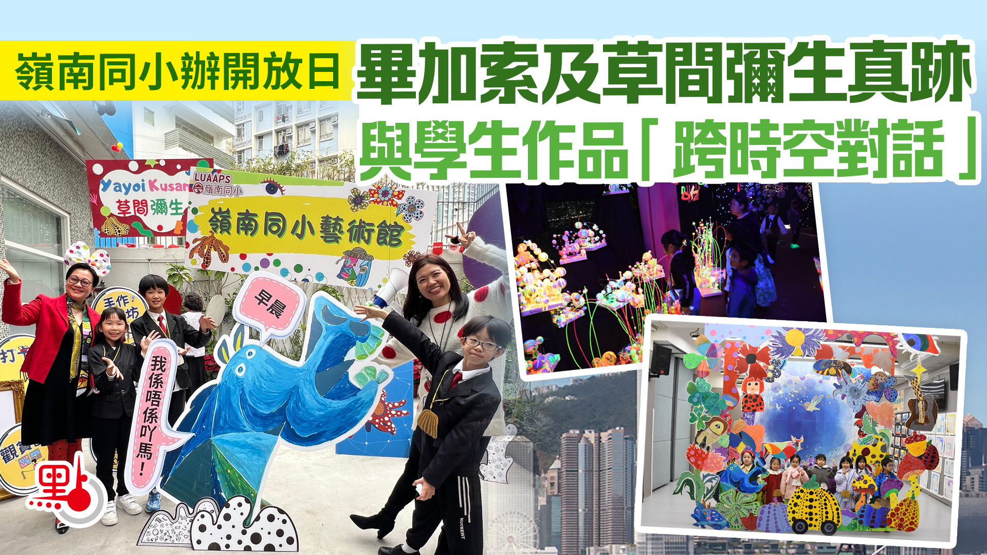 【點新聞報道】嶺南大學香港同學會小學(LUAAPS)於昨日(12日)舉行年度大型藝術開放日,邀請教育局、辦學團體及多間中、小、幼學校校長等教育界嘉賓蒞臨,共同見證校園華麗蛻變為充滿活力的沉浸式藝術殿堂。校方特別獲得收藏家康垚慷慨借出畢加索與草間彌生等大師的世界級原作真跡,與全校學生充滿巧思的創作相互輝映、交相生輝,生動詮釋了「愉快學習 創意無限」的教育願景。