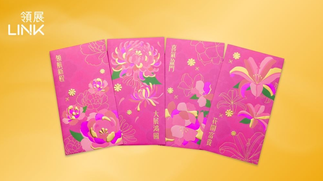 另外,領展推出「百花福滿迎新春」利是封換領活動。於推廣期內,顧客任何連續3日於同一指定活動推廣地點以電子貨幣累積淨消費滿600元或以上(憑同一商場及/或同一街市不同商戶發出的正本機印發票最多兩張),即可換領「百花福滿迎新春」利是封一套;滿1,200元或以上可換領兩套。禮品總數量共10,000套(每套禮品均有四款設計,共八個利是封),數量有限,先到先得,換完即止。