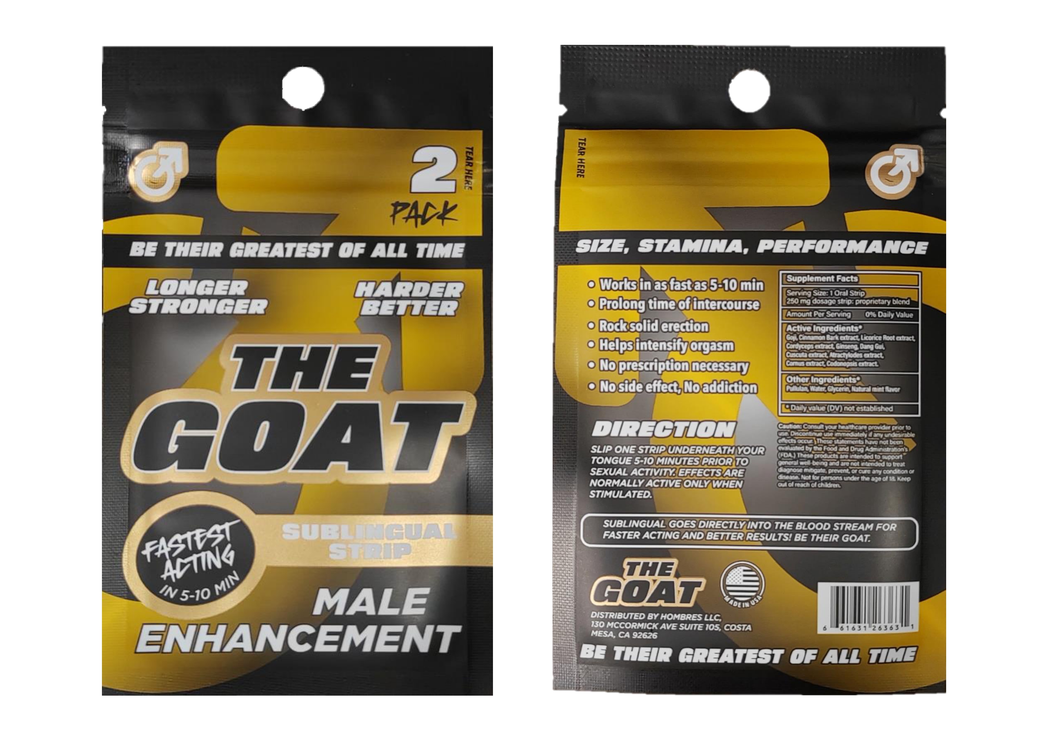 衞生署早前跟進一宗投訴,透過即時通訊軟件購買一款名為「The Goat Sublingual Strip」產品樣本,標籤顯示有關產品是天然成分的壯陽口服產品。政府化驗所的檢驗結果顯示,產品樣本含有《藥劑業及毒藥條例》(第138章)下的第1部毒藥「昔多芬」,而有關產品亦懷疑屬未經註冊藥劑製品。