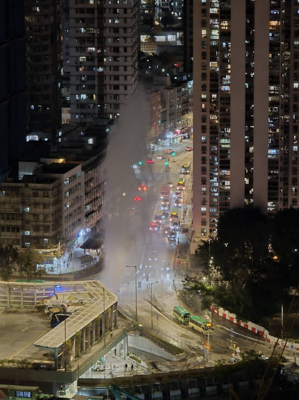黃大仙沙田坳道爆水管 水柱擎天高達約10層