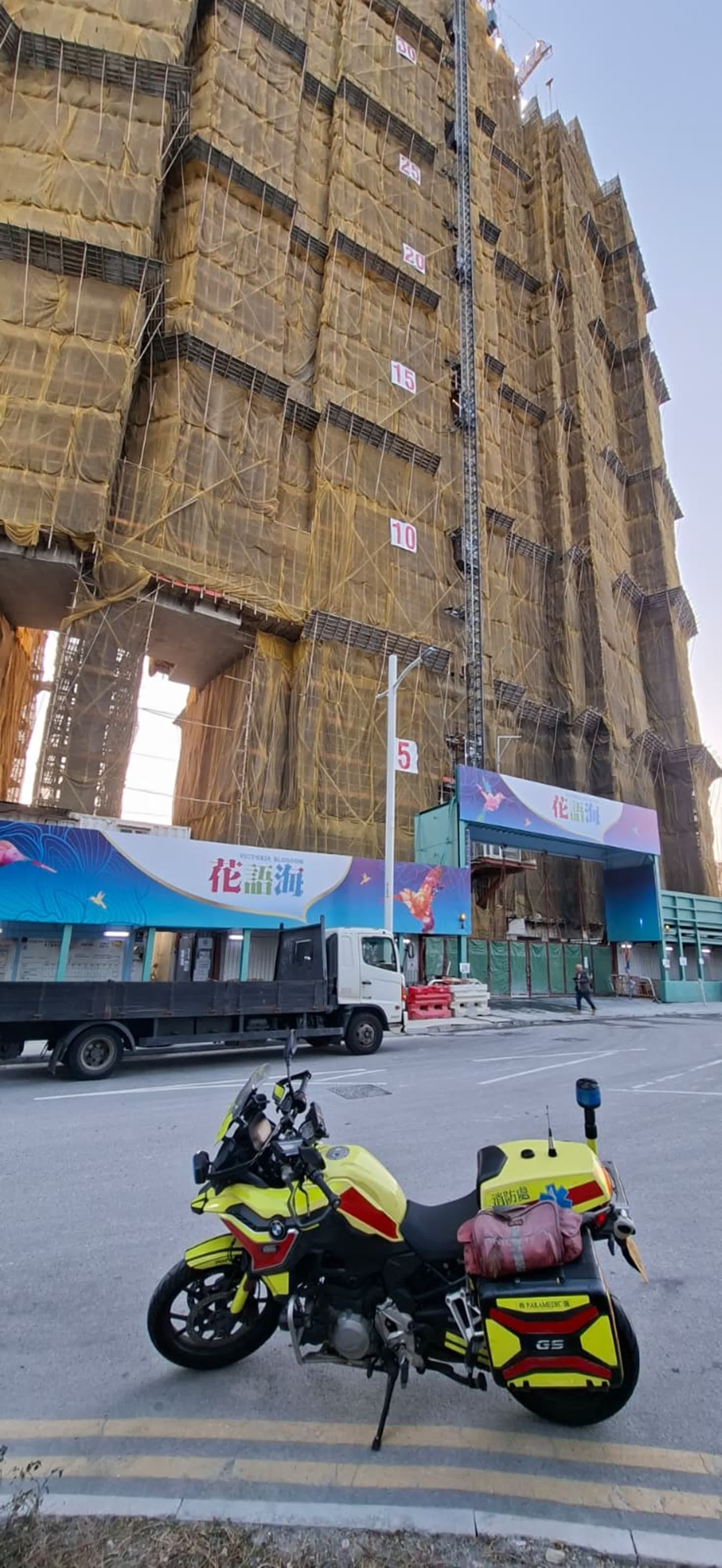 【點新聞報道】啟德承豐里一建築地盤昨日(14日)發生涉及升降台的奪命工業意外,一名水泥工慘遭夾在升降台欄杆與牆身之間重傷昏迷,送院證實死亡,另一工友救人時亦告輕傷。初步調查不排除因地盤現場位置有暗斜,以致升降台意外移動釀成事故。死者家屬今日(15日)早上到葵涌公眾殮房辦理認屍手續,神情哀傷。