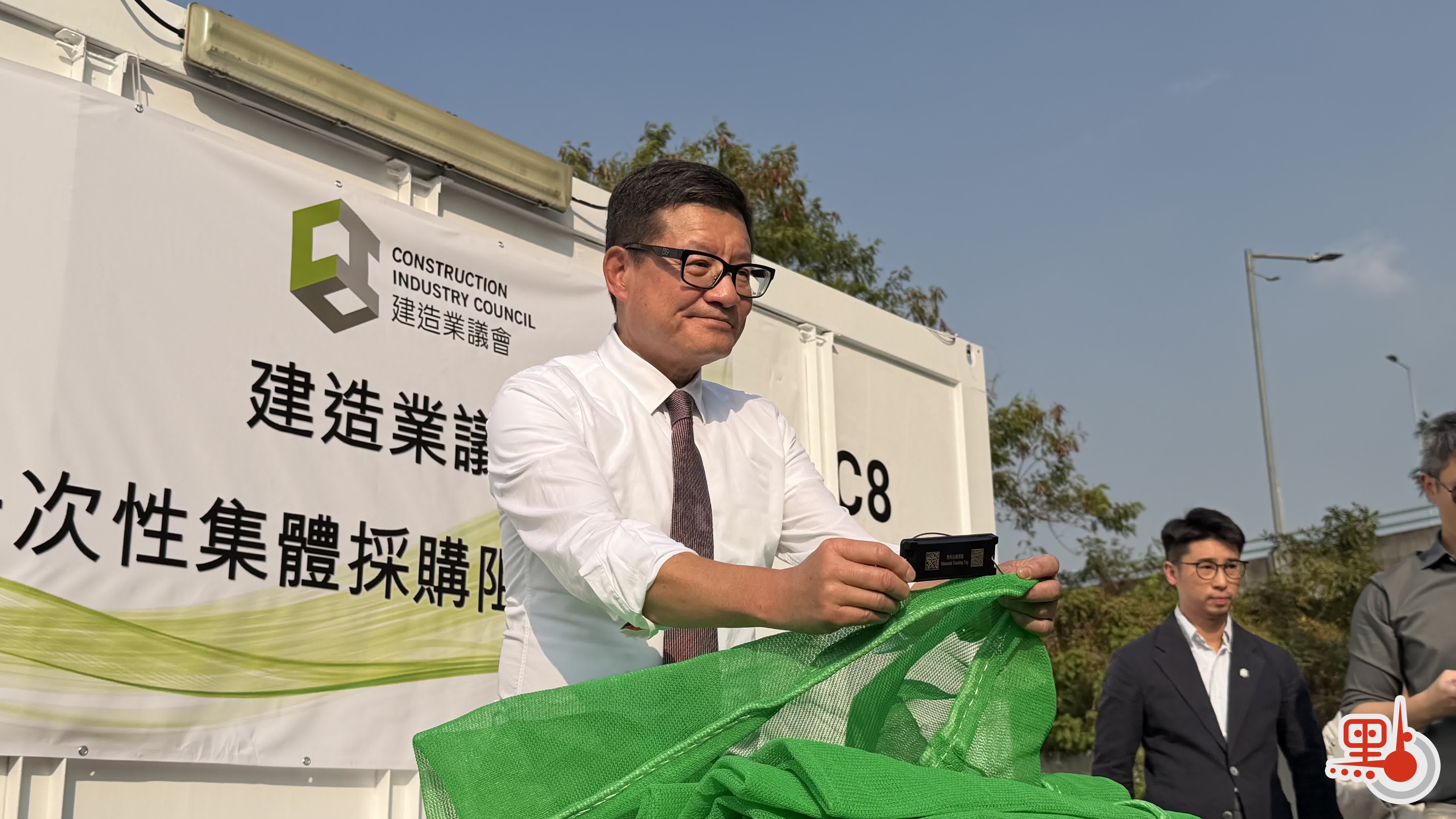 (有片)建造業議會首批3000張棚網集體採購到港 阻燃測試全部合格