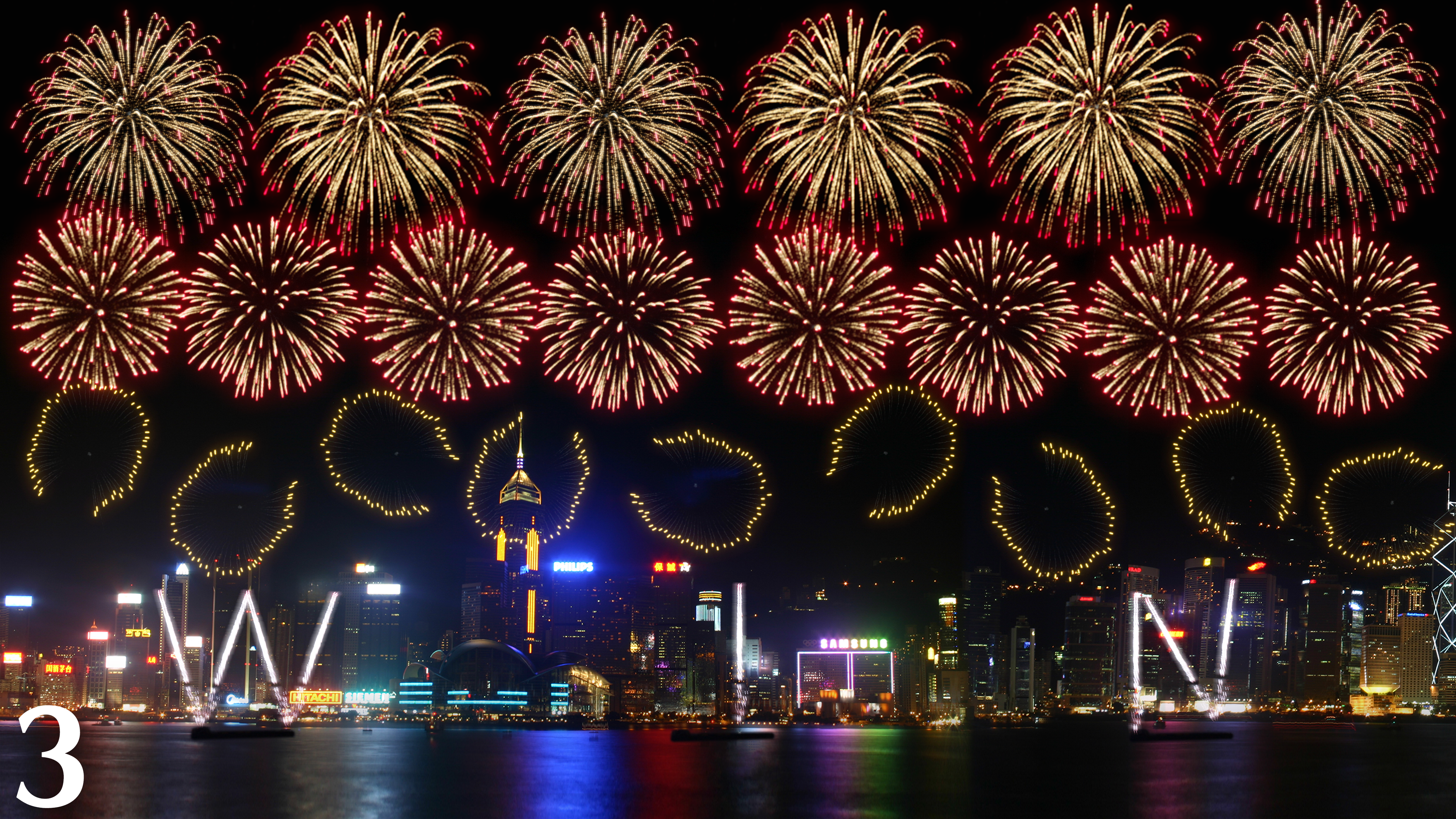 (有片+多圖)賀歲煙花匯演年初二舉行 歷時23分鐘共八幕 發放逾3萬枚煙花