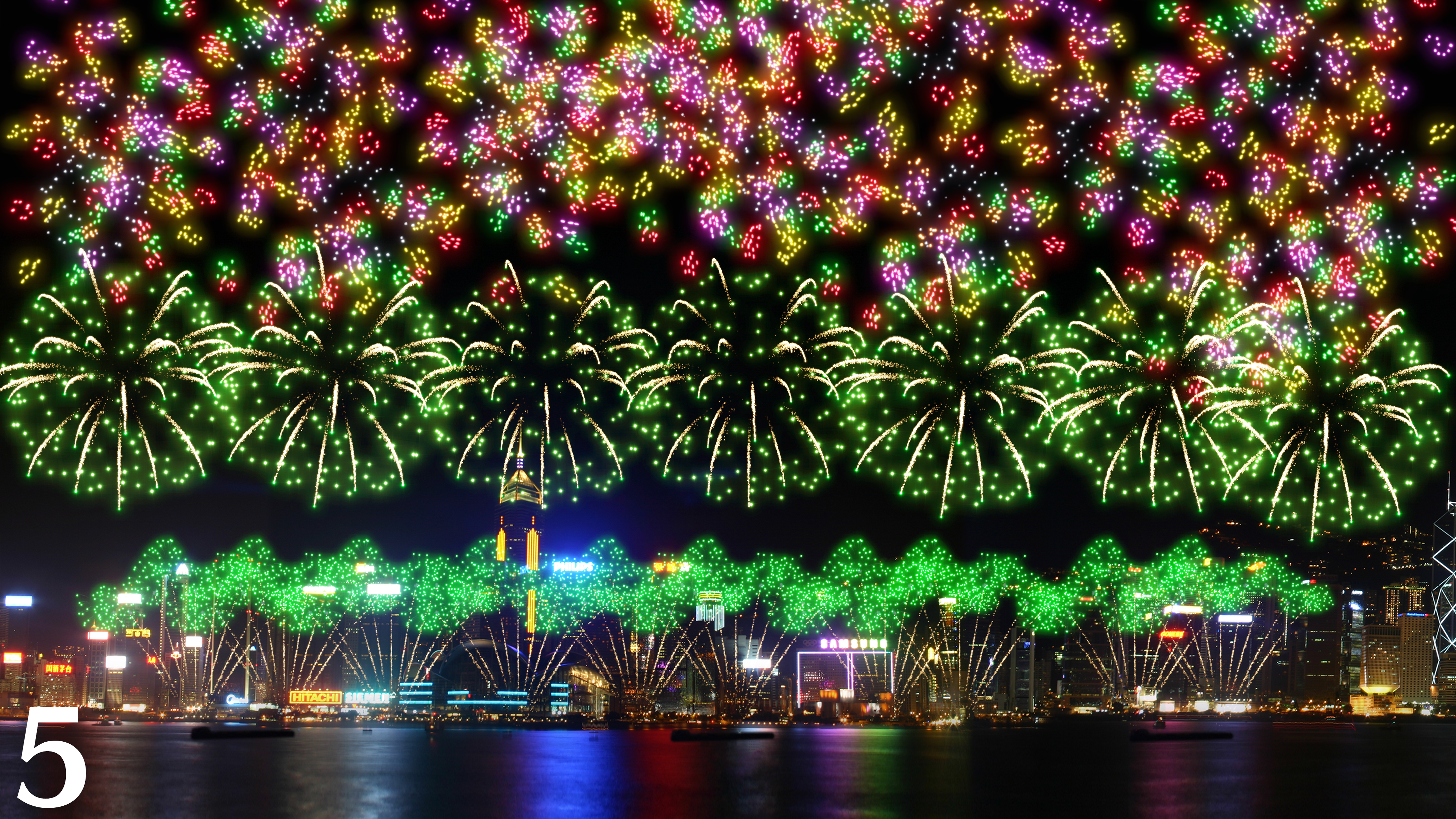 在這一幕,維港化身成為馬年慶典的空中舞池,「七彩變幻球」與多重圓形禮花彈如水晶球般在高空旋轉躍動,帶動熱鬧歡騰的節奏。絢麗光影好像追逐夢奔跑的駿馬,陪伴市民在新一年昂首向前、勇往直前,為理想不斷衝刺。