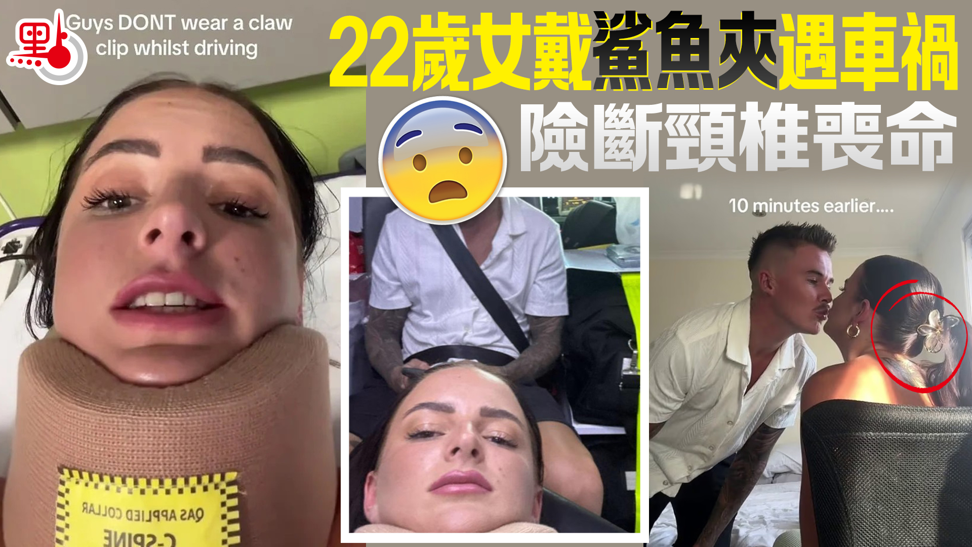 22歲女戴鯊魚夾遇車禍 險斷頸椎喪命