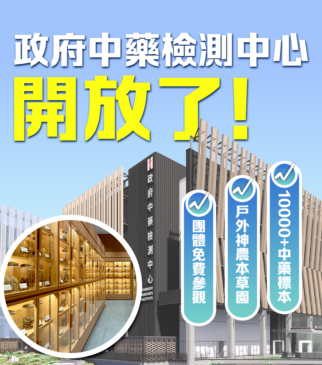 【點新聞報道】你知道中藥材標本也要住「冷氣房」、做「冷凍SPA」嗎?在香港,有個隱藏在將軍澳的「中藥寶庫」——政府中藥檢測中心永久大樓,竟然免費開放參觀!這裏不僅藏着一米多高的稀有藥材、能偷窺實驗室如何用科技記錄千年智慧,還能漫步在種滿180種藥用植物的「神農本草園」,聞得到涼茶材料原香,摸得到湯料原型!點新聞這篇攻略帶你破解預約秘訣、直擊必看亮點,趕快組團出發吧~