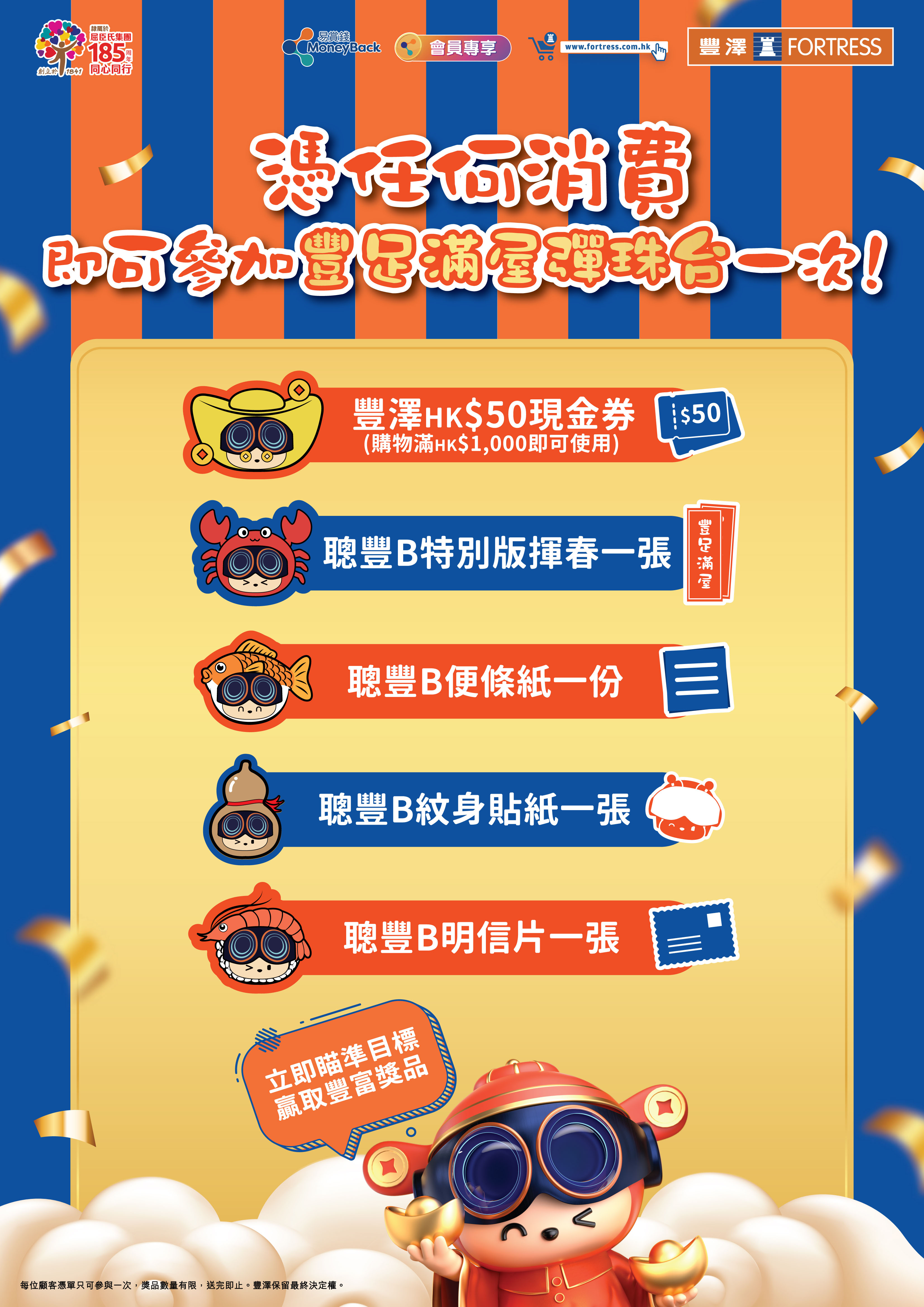 屈臣氏集團旗下豐澤於即日起至2月24日推出農曆新年主題推廣「豐足滿屋」活動;活動期間,豐澤同時推出多款限量「聰豐B」賀年精品。豐澤精選超過800件產品以低至37折發售,更推出新春限定「魚蝦蟹遊戲套裝」,以聰豐B吉祥物為設計主角。顧客可透過任何消費加$88換購,或選購精選品牌產品加$38換購,亦可於單一消費滿$5,998後加$68換購。套裝內容包括魚蝦蟹遊戲墊、骰盅、骰子及精美包裝盒。