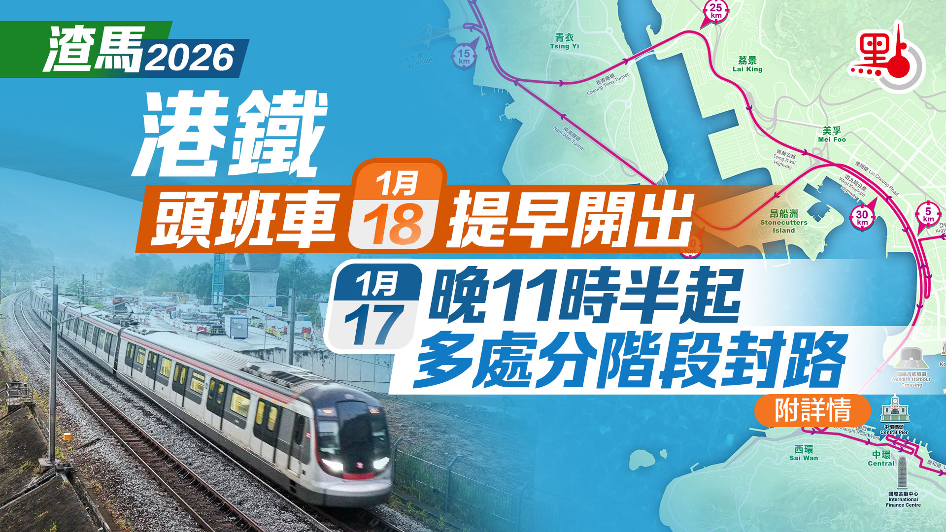 渣馬2026|港鐵頭班車明提早開出 今晚11時半起多處分階段封路