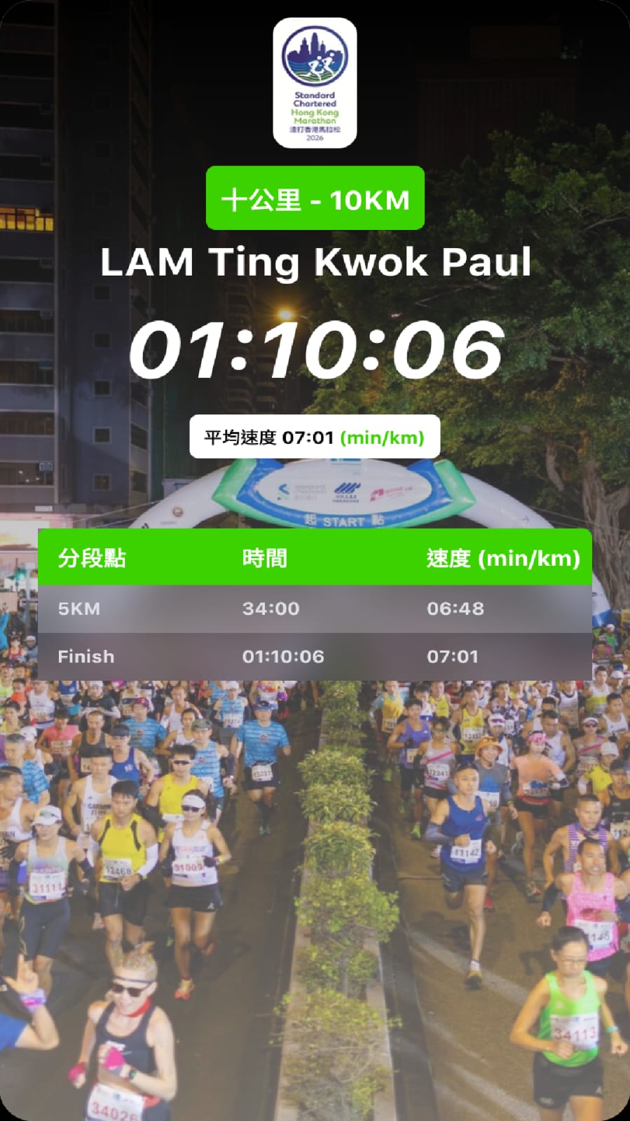 渣馬|林定國同太太完賽10公里 曬成績單直呼「大滿足」