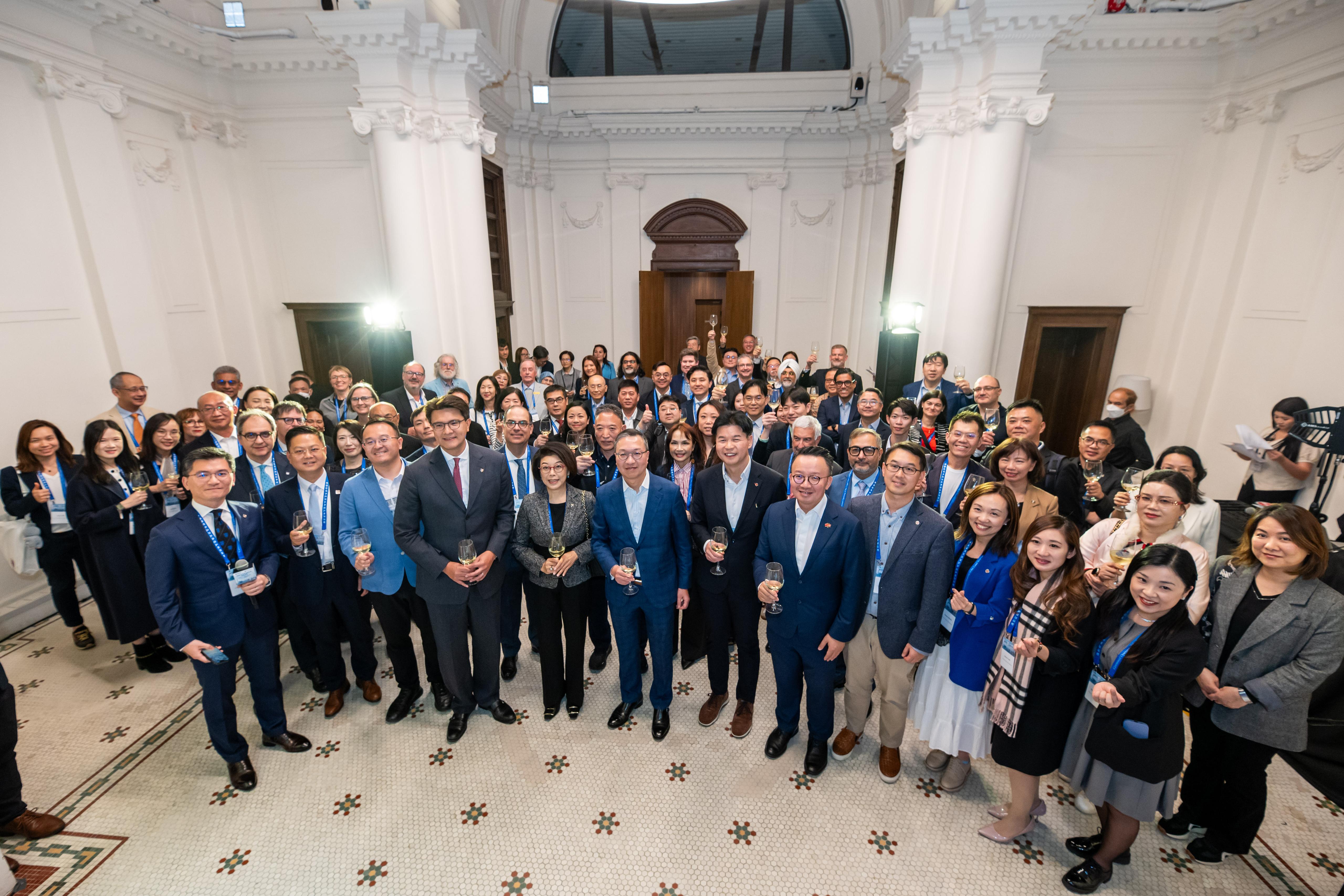 一眾嘉賓晚上到前法國外方傳道會大樓出席歡迎酒會,律政司司長林定國亦出席並致歡迎詞。毛樂禮在致詞時感謝律政司鼎力支持是次酒會,借出大樓作為活動場地,又向一眾嘉賓介紹大樓前身是香港終審法院,有超過100年歷史,屬於法定古蹟,今次是法律年度開啟典禮周邊活動的歡迎酒會,首次移師大樓內舉行,別具意義。