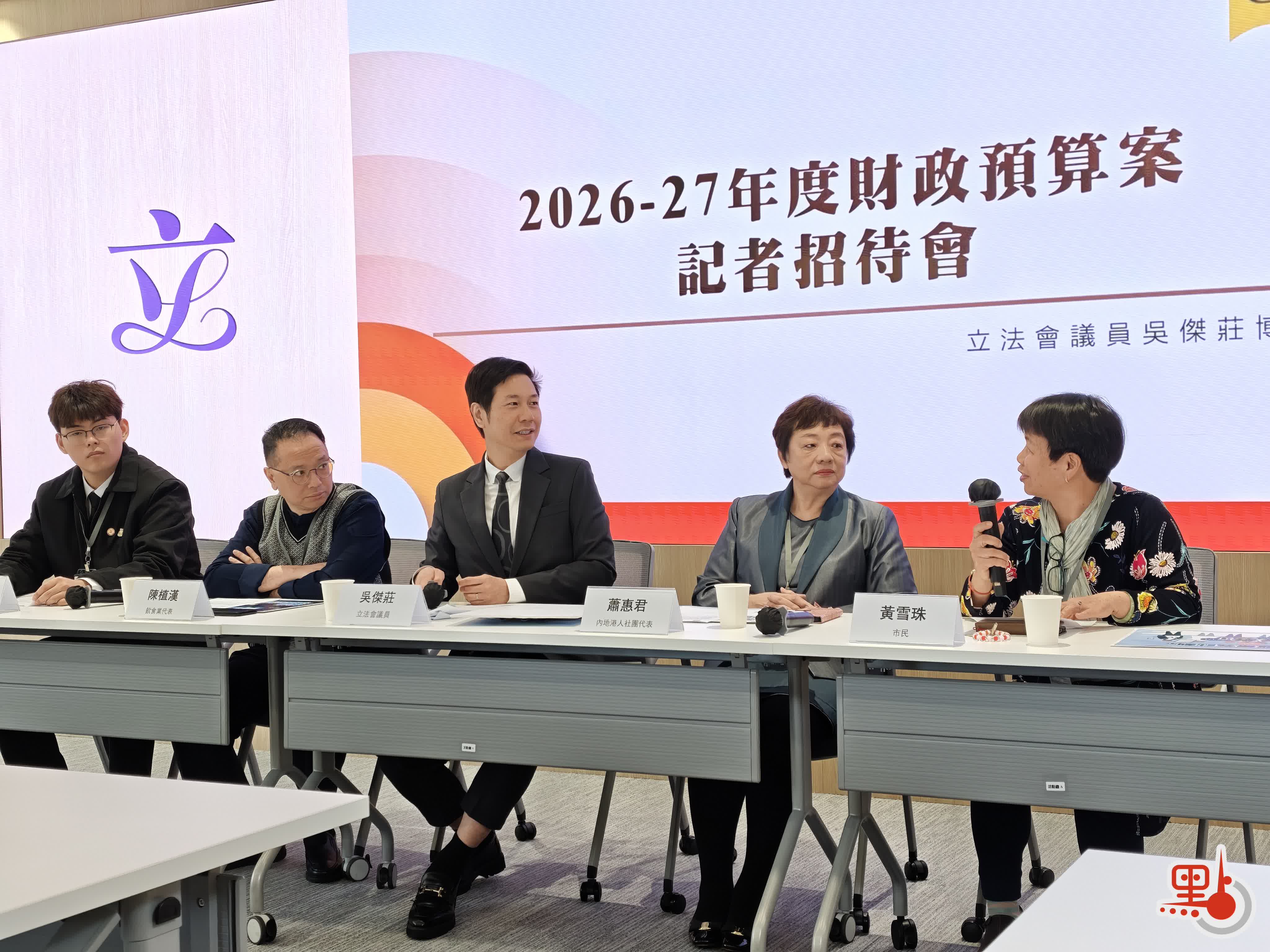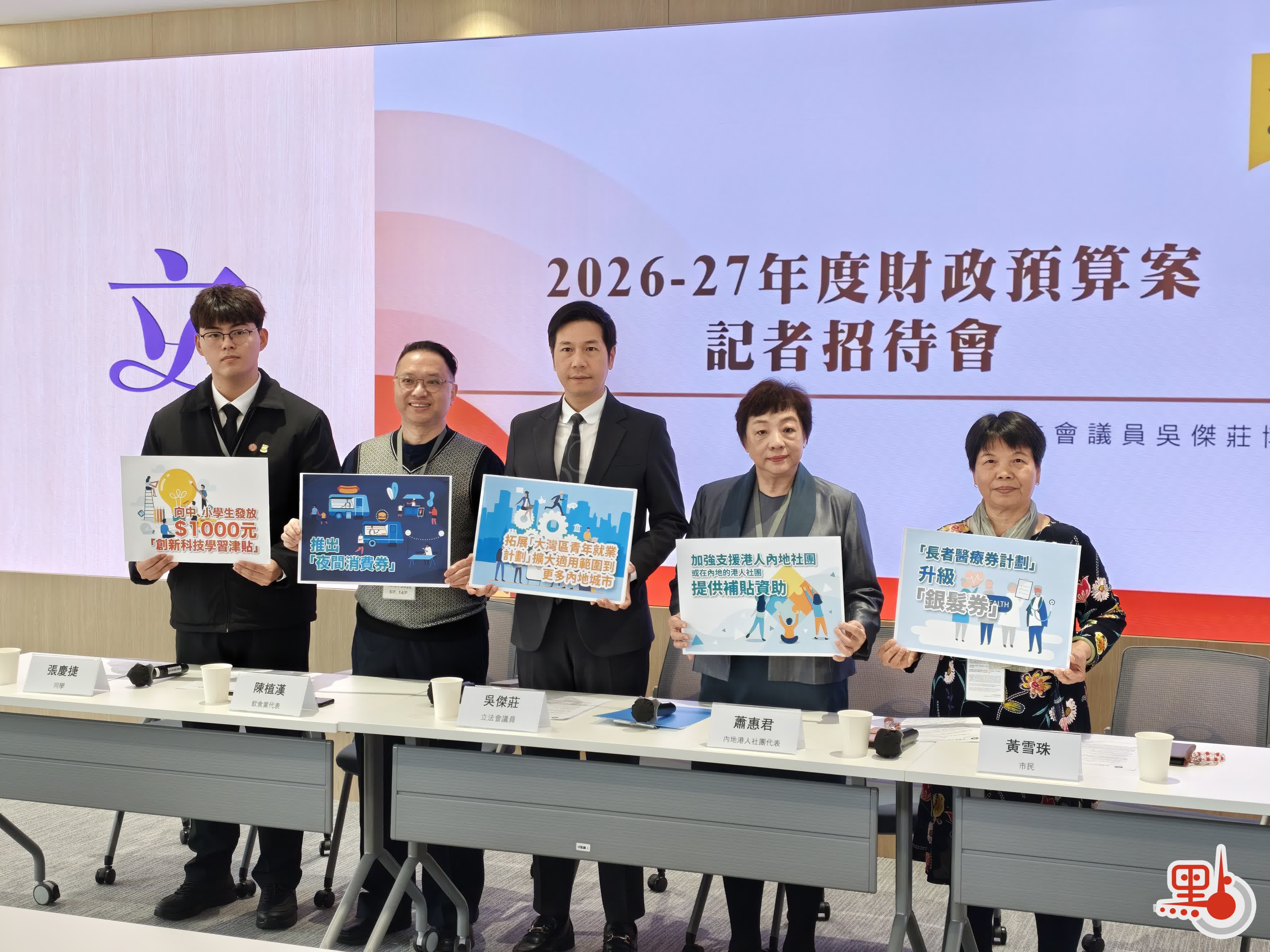 【點新聞報道】新一年度財政預算案將於2月25日發表,立法會議員吳傑莊今日(19日)見記者,提出鼓勵消費、教育支援、長者安老等多方面具體建議。