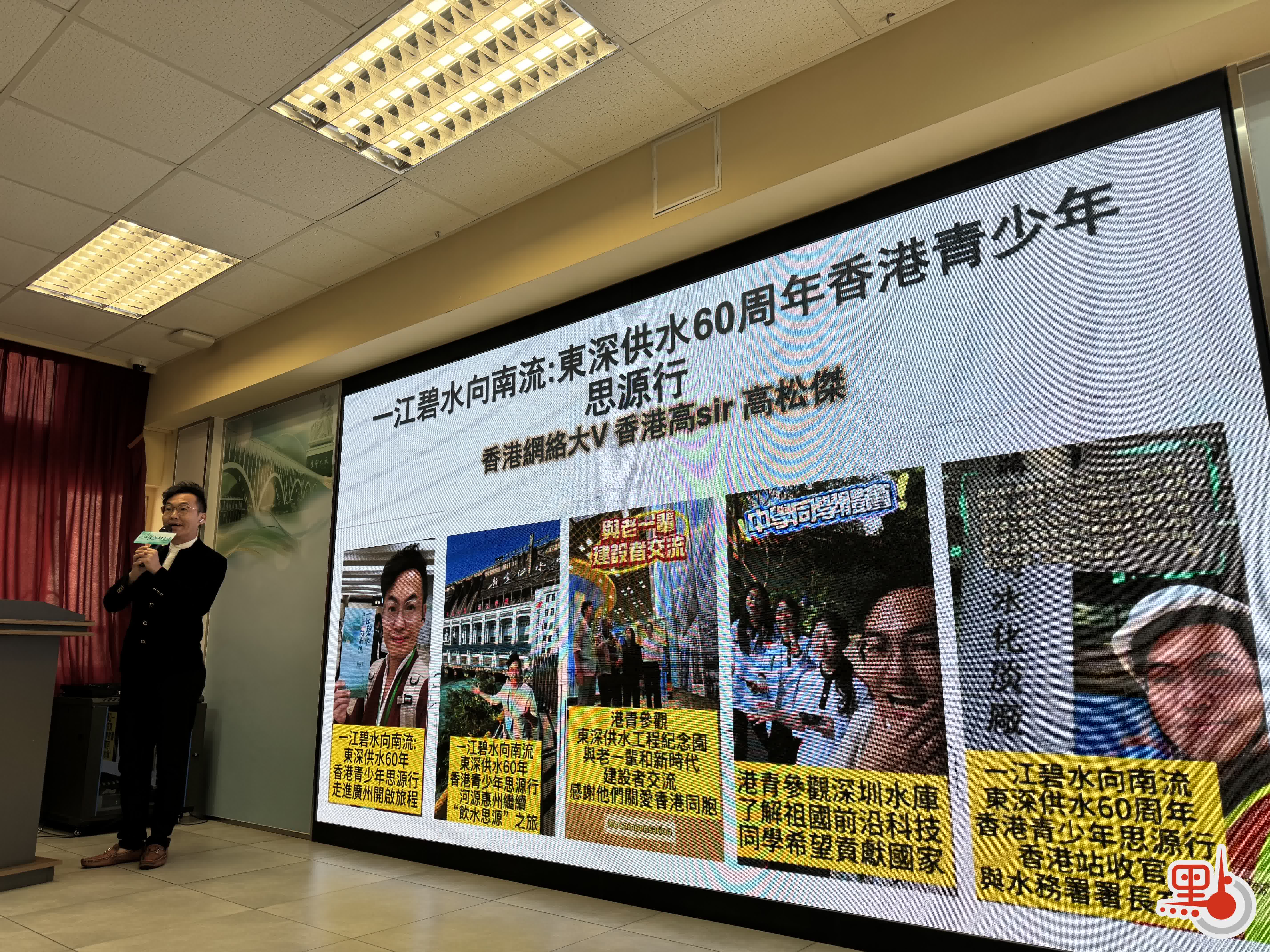 隨團的還有香港的傳媒人士。來自香港01的許靖雯用一張張1963年香港大旱時的老照片開始了她的分享,她表示,此次隨行深切震撼於工程建設的艱辛與內地對香港的無私支持。她指出,科技提升了供水保障,工程對香港經濟轉型亦起到了關鍵作用,最後她呼籲大眾銘記這段流動的歷史,主動了解祖國,成為懂得感恩、勇於擔當的新一代。