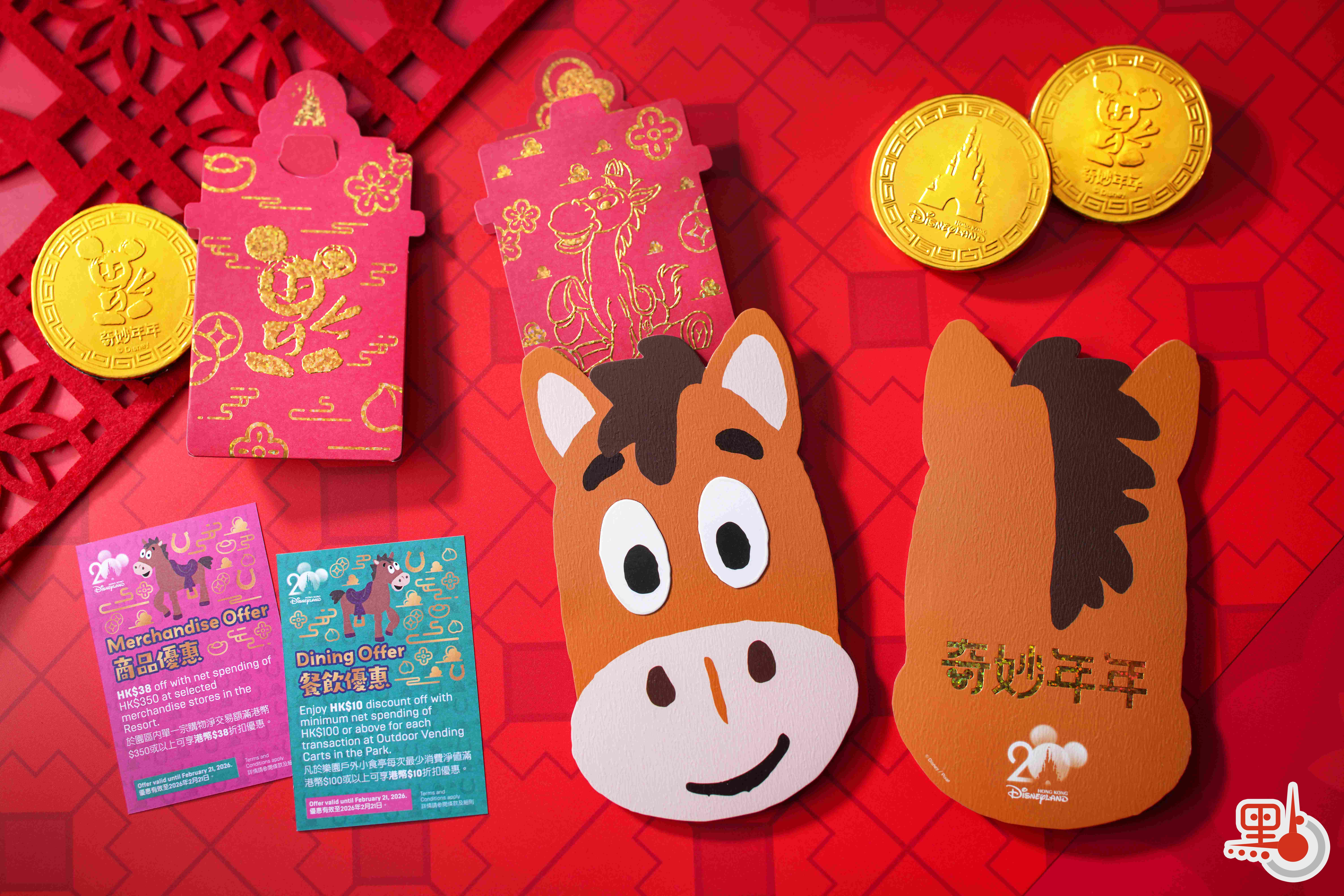 新春活動期間,香港迪士尼小鎮廣場中央的米奇紅燈籠以《反斗奇兵》的小馬紅心為設計主題,財神高飛連同米奇與好友將換上賀年服飾,於美國小鎮大街與賓客分享新春祝福。值得一提的是,大年初一(2026 年2月17日)起入園的賓客,將獲贈小馬紅心馬年利是一封,內含朱古力金幣及餐飲與購物優惠券,數量有限,送完即止。