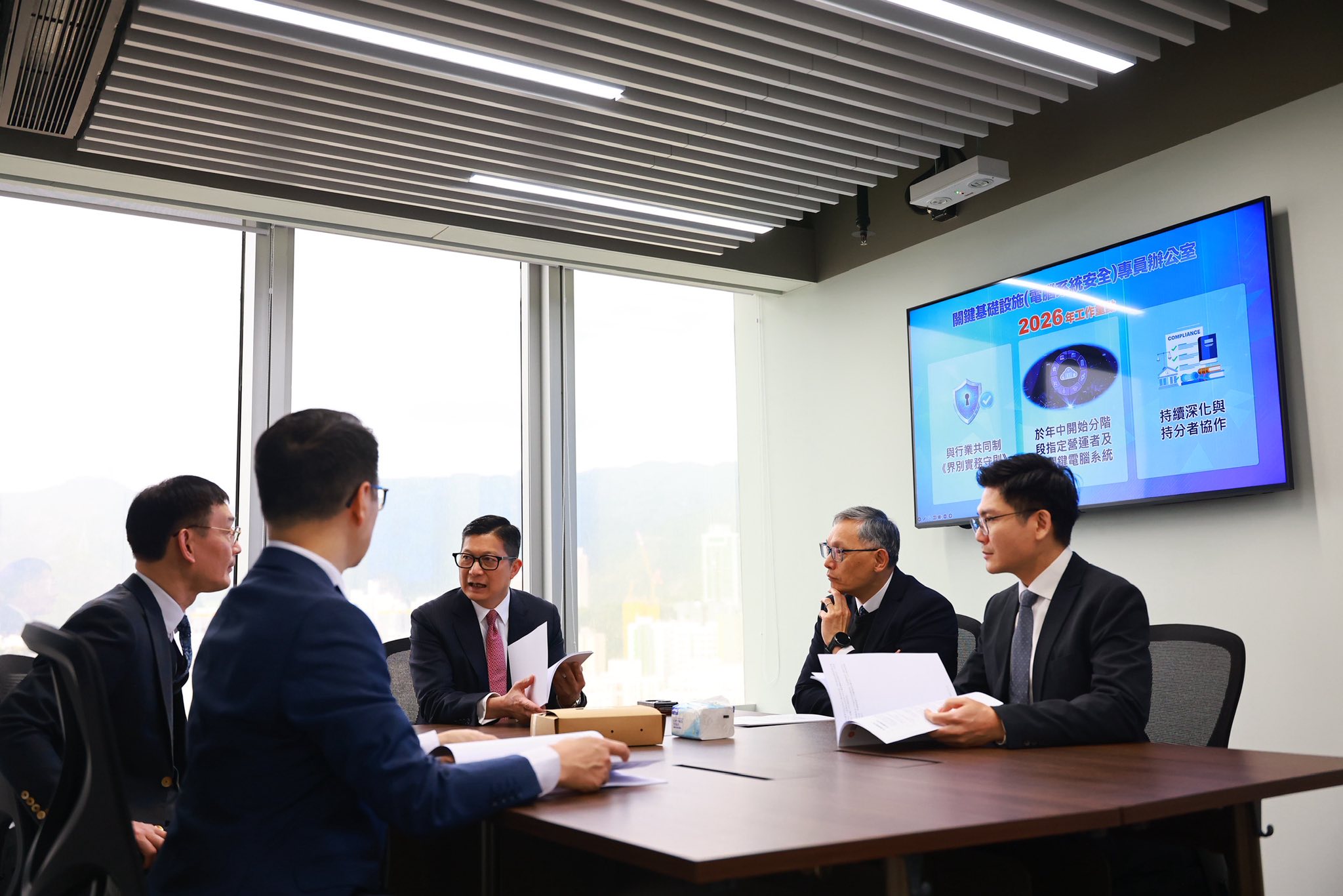 保安局局長鄧炳強今日(20日)前往辦公室,聽取新任關鍵基礎設施(電腦系統安全)專員匯報工作進展。