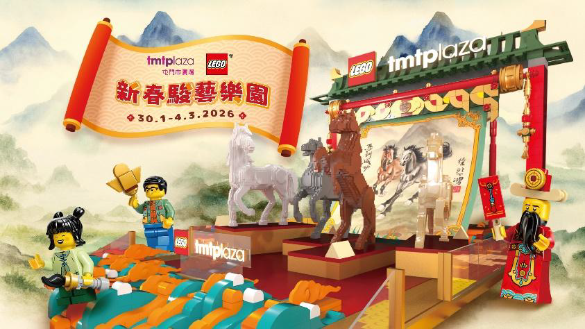 喜迎丙午馬年,屯門市廣場聯乘LEGO香港推出「新春駿藝樂園」,以近40萬粒LEGO顆粒首次重現徐悲鴻大師經典《六駿圖》,融合藝術與創意打造打卡裝置及互動遊戲,象徵「馬到功成」,讓大小朋友玩轉新春、馬上添樂!
