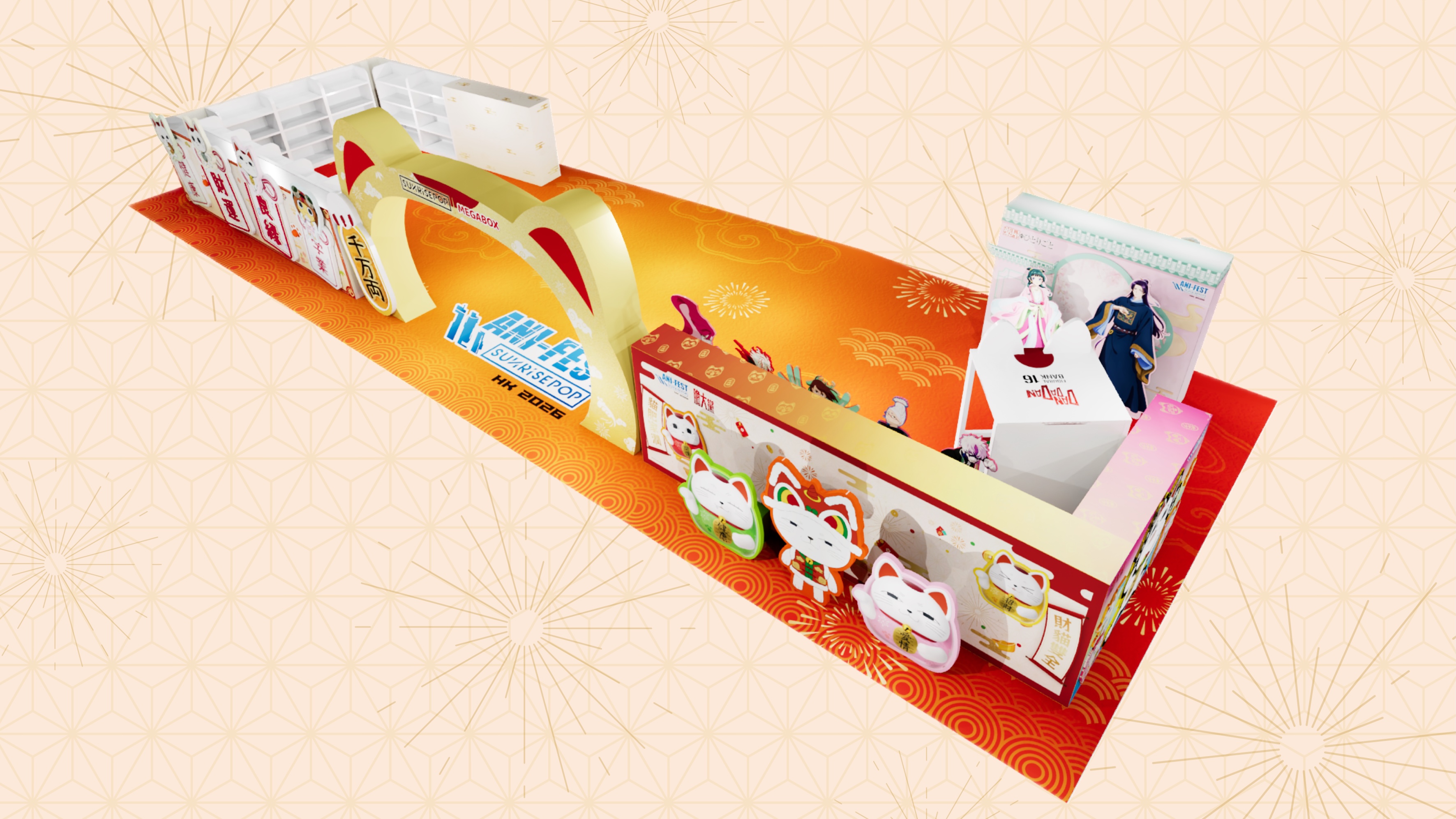 三大打卡位包括巨型3米高招財貓拱門、2.6米高賀年版高速婆婆達摩、1:1高速婆婆COIN BANK打卡亭、三大IP角色打卡牆。此外,更有期間限定店提供逾180款商品,包括多件MegaBox會場限定或率先開售產品。