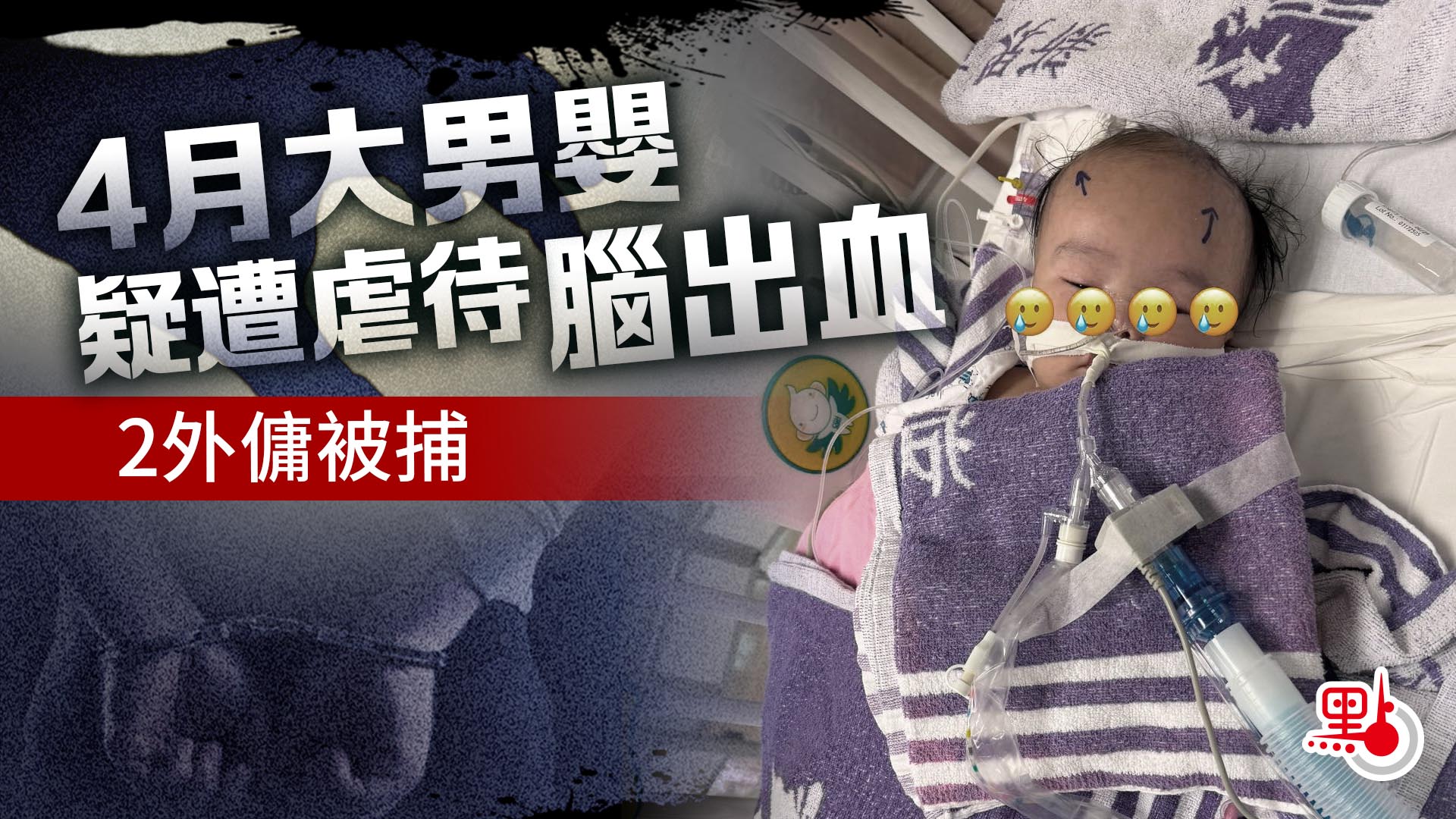 網上流傳一段帖文,一名4個月大男嬰懷疑遭外傭虐待,其父在帖文中表示,兒子「比(俾)姐姐大動作搖晃、叉頸」,導致「腦部出血、有血水,凌晨突然抽筋,之後失去知覺」;帖文亦附有男嬰留院的相片,可見他閉眼躺在病床,身體及口鼻插有喉管。