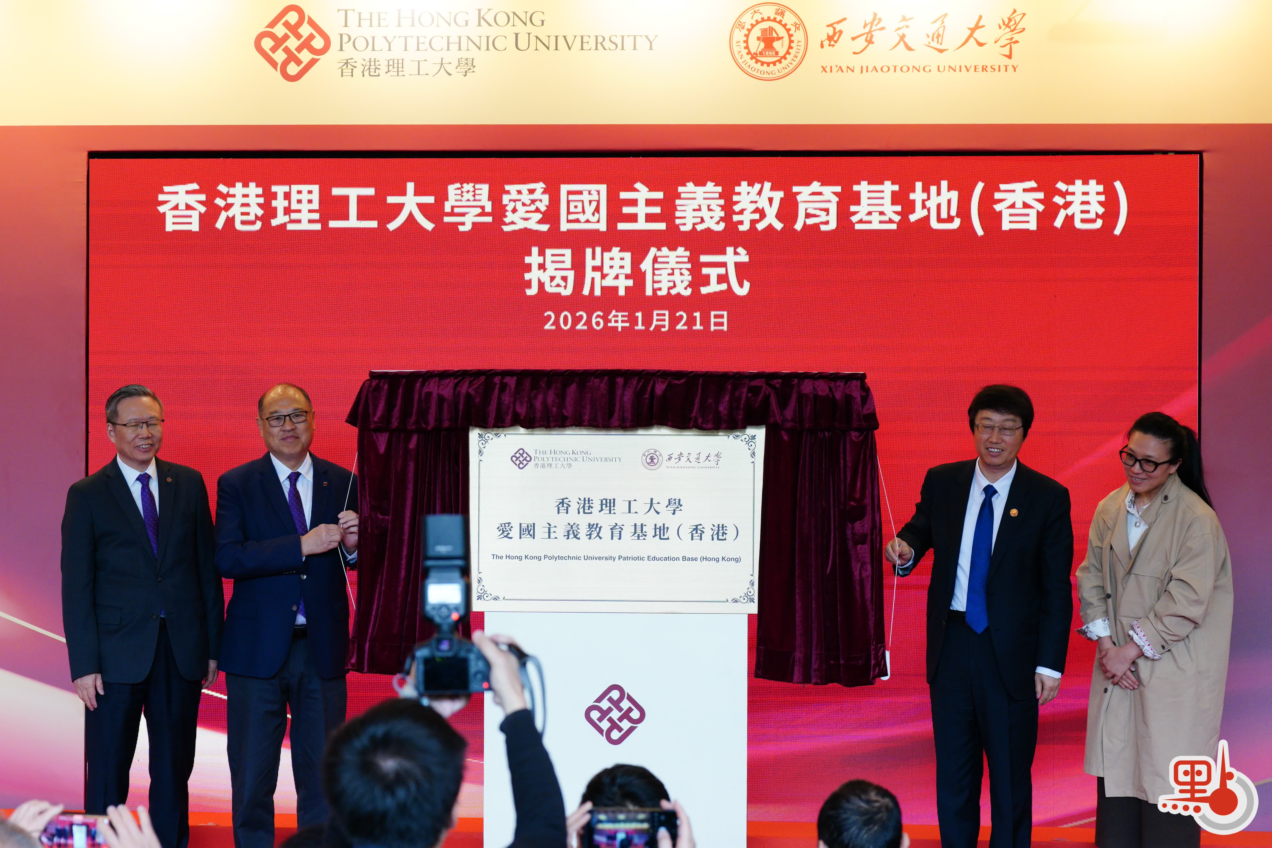 【點新聞報道】為配合國家推展愛國主義教育,香港理工大學(理大)與西安交通大學(西安交大)共建「香港理工大學愛國主義教育基地」,成為香港首間於內地及香港同時設立有關示範基地的大學。「理大愛國主義教育基地(香港)」今日(21日)正式揭牌,與西安交大攜手培育愛國愛港青年。出席基地揭牌儀式的主禮嘉賓包括民政及青年事務局局長麥美娟、中央駐港國安公署聯絡局副局長謝志祥、理大校董會主席林大輝、理大校長滕錦光、西安交大校長張立群及西安交大港澳台辦主任劉文鳳等。