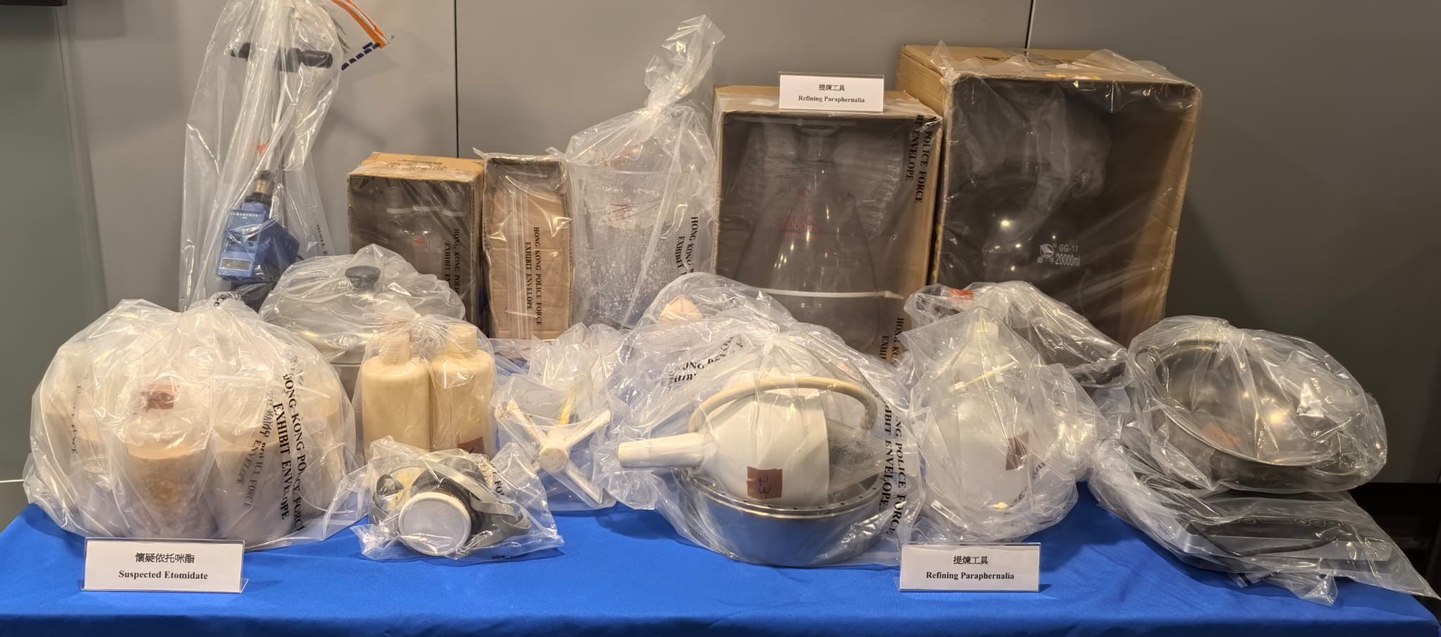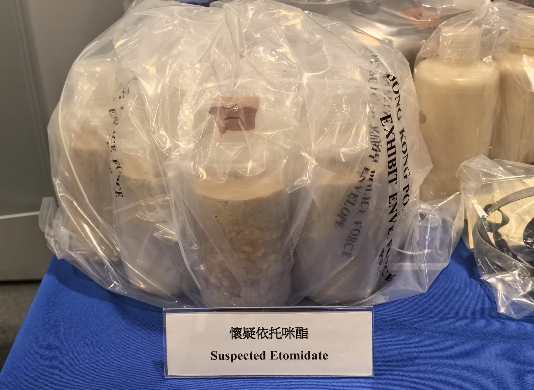 藉此機會,警方再次重申,吸食依托咪酯後,會導致使用者精神恍惚、意識不清,出現類似喪屍狀態,並引發一系列身體不良反應,包括血壓下降、肌肉抽搐、噁心、頭痛,甚至昏迷與幻覺。根據香港法例第134章《危險藥物條例》,製造危險藥物屬非常嚴重的罪行,一經定罪,最高可判處終身監禁,希望市民大眾切勿以身試法。