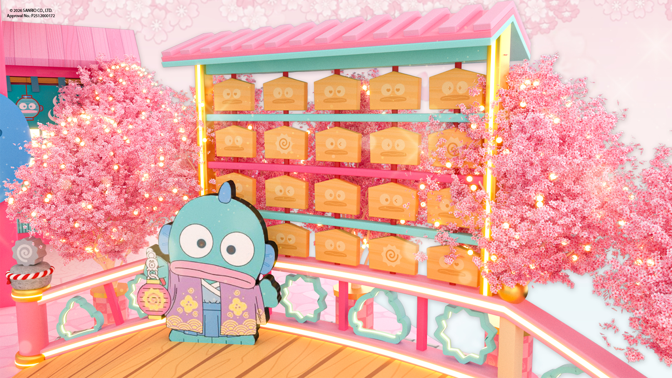 隨着HANGYODON的步伐,一起踏上「HANGYODON『魚』意吉祥橋」,身披華麗金線羽織、手持燈籠的HANGYODON,將陪伴大家欣賞整個和風花庭園的怡人景致。而吉祥橋上更特設「『睛睛』日上祈願繪馬牆」供大家祈願,每塊好運繪馬都印有不同的HANGYODON趣緻眼神,寓意來年對家庭、戀愛、健康、財運等祝福:「亮晶晶眼」象徵家庭溫馨洋溢、滿心幸福;「愛心眼」象徵戀愛心想事成、愛意滿溢;「醒目wink眼」寓意身體健康、精靈活潑;而「閃閃星星眼」則寓意財運順風順水、吉星高照,承載着大家的美好願望,必定心想事成!
