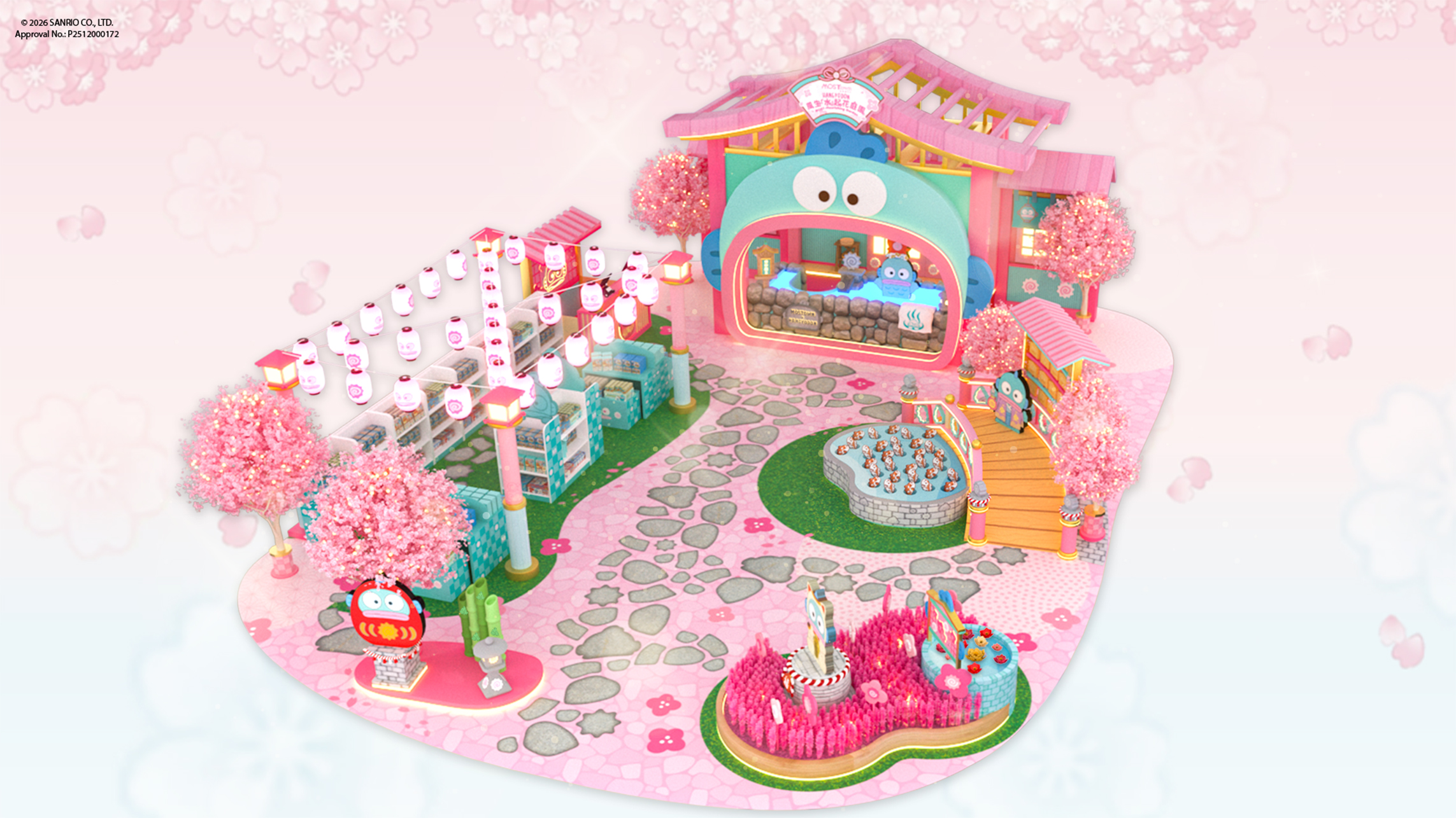 走進花庭園中央,映入眼簾的是高達6米的「HANGYODON如魚得水溫泉風呂」,HANGYODON與好友SAYURI悠閒地享受溫泉時光;暖霧繚繞的燈效營造出置身溫泉風呂的氛圍,窗外更若隱若現地浮動着好友ITARO的身影,看似他也想一起享受溫泉呢!走入風呂並啟動溫泉裝置,更可細聽HANGYODON親口送上的新春祝福,將暖入心底的好運祝願獻給你,寓意新一年風生「水」起、「水」潤順遂。這段開運之旅處處藏着滿滿的福氣,讓HANGYODON伴您迎接豐盛吉祥的新春!