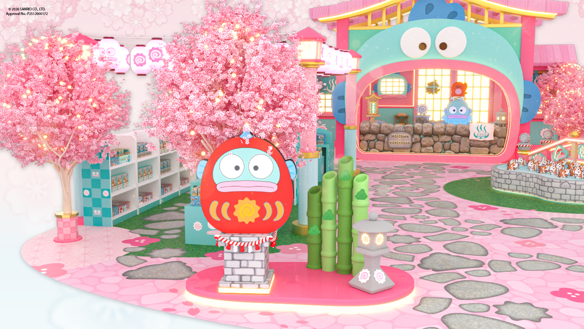 HANGYODON將帶領大家展開這趟「風生『水』起花庭園」開運之旅,與你暢遊4大開運主題打卡區,沉浸於和風與新春祝福交融的喜氣新年氛圍!「新春招運達摩HANGYODON」率先在和風庭園入口親切迎賓,園內粉紅花海襯托翠綠茂竹,寓意新一年「步步高陞」,石燈籠灑落的柔和光暈,於新一年為你照亮錦繡前程!
