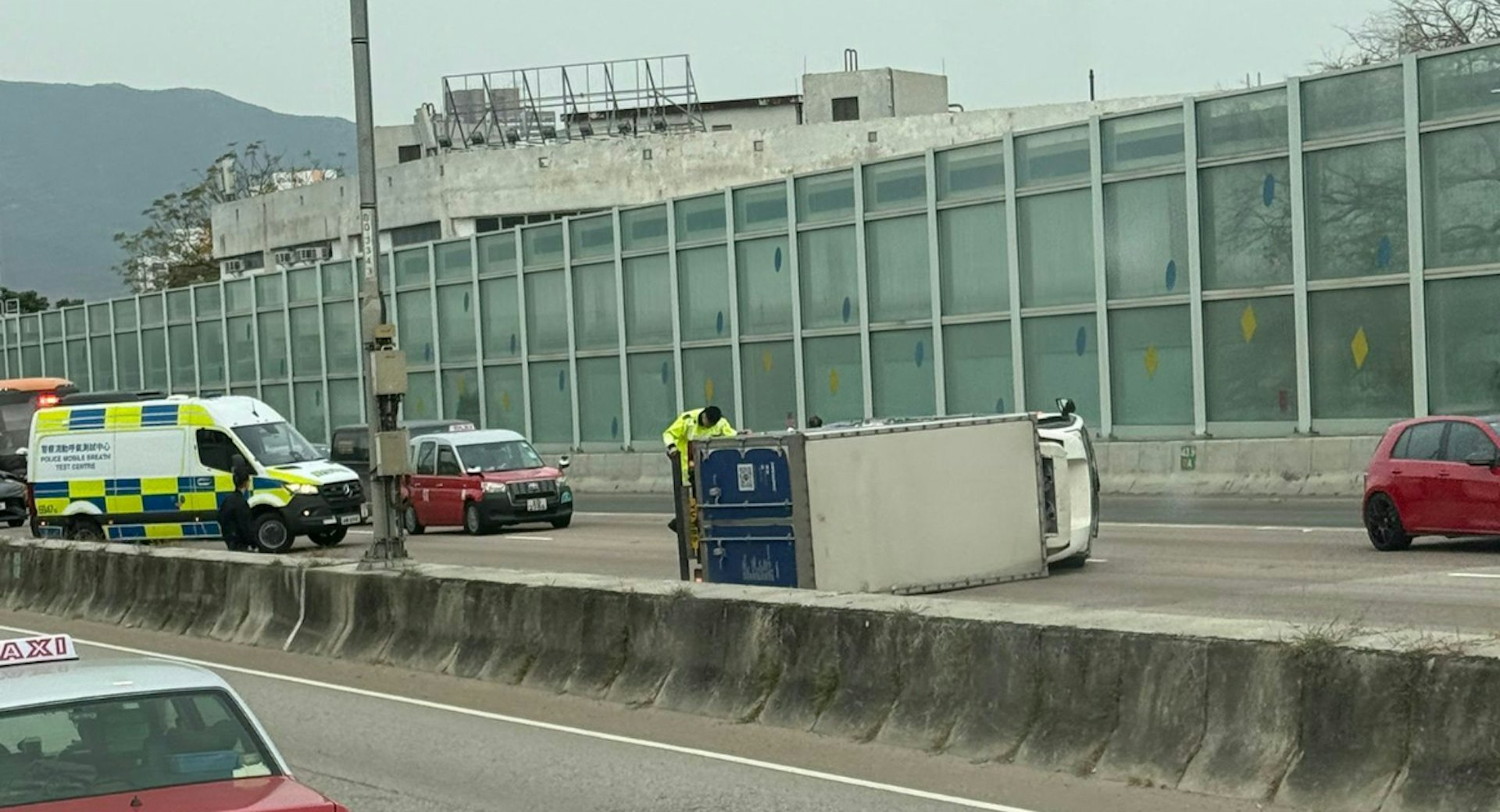 運輸署宣布,受交通意外影響,元朗公路(往上水方向)近唐人新村的部分行車線仍封閉。駕駛人士只可使用餘下行車線行車。現時上址交通擠塞。