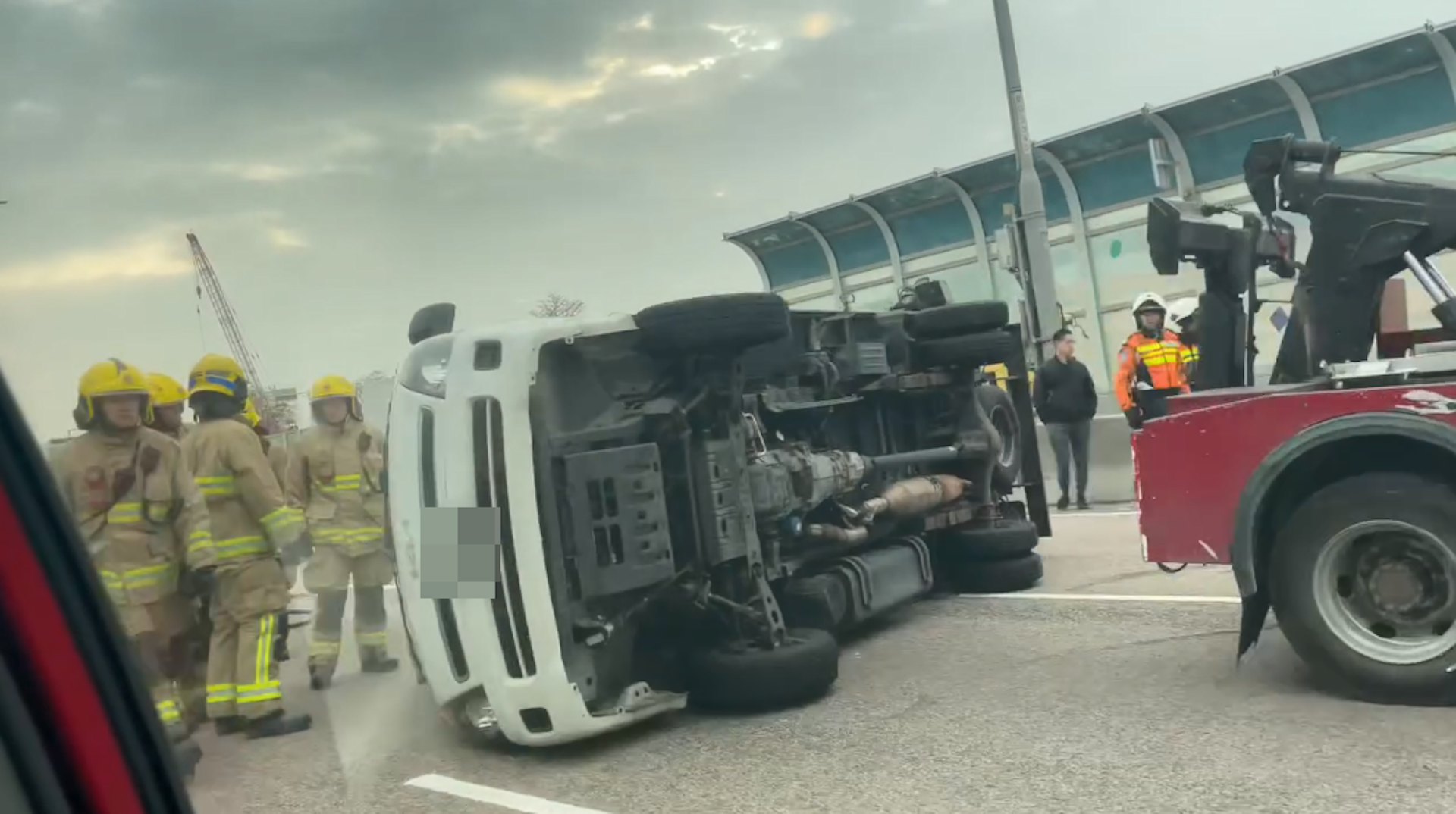 元朗公路貨車翻側 男司機一度被困 往上水方向部分行車線封閉