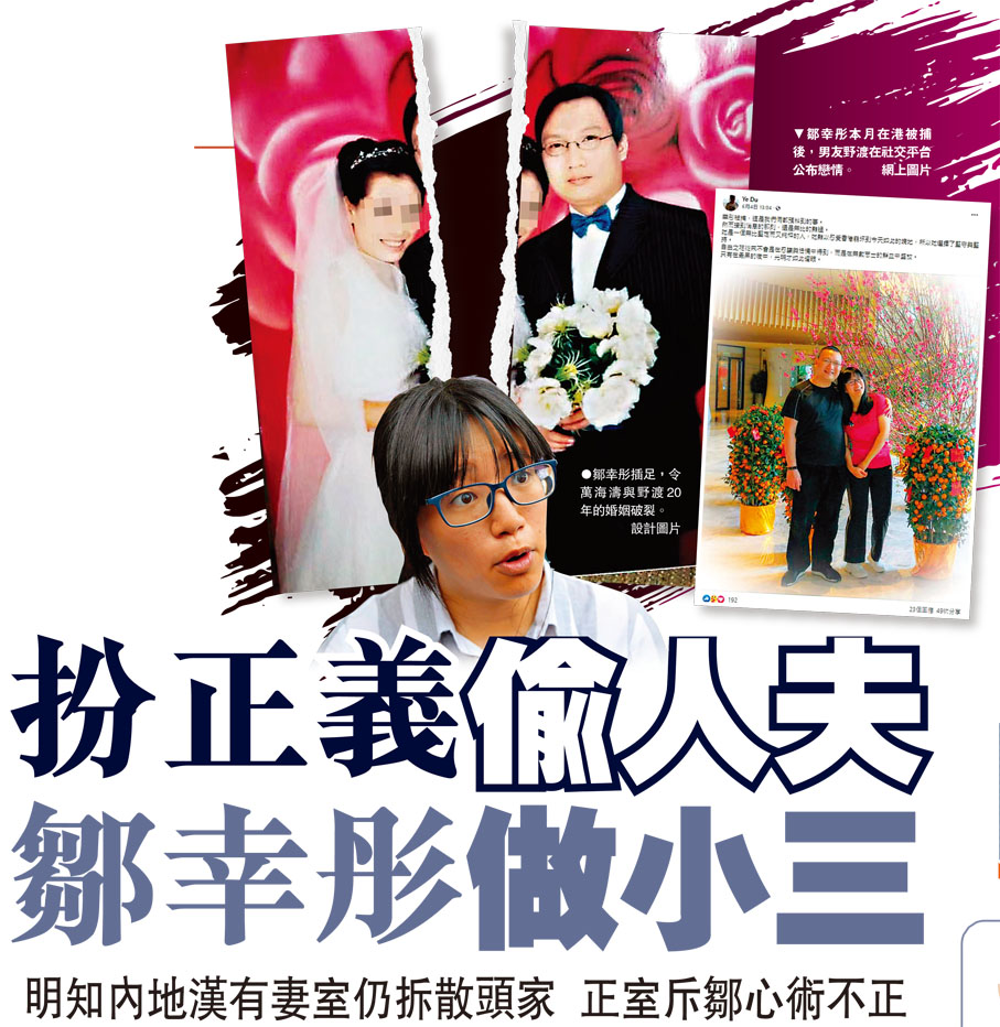 在鏡頭前,鄒幸彤一本正經揚言要「爭取民主」,但私底下卻極可能是破壞他人家庭的「第三者」。鄒幸彤的內地男友野渡(真名吳楊偉)前妻萬海濤踢爆,數年前,鄒幸彤明知野渡已有妻室,但仍當其秘密情人,終令她與野渡20年的婚姻破裂。萬海濤怒斥鄒表面上「假正經」,實際上則是破壞他人婚姻的「真小三」。