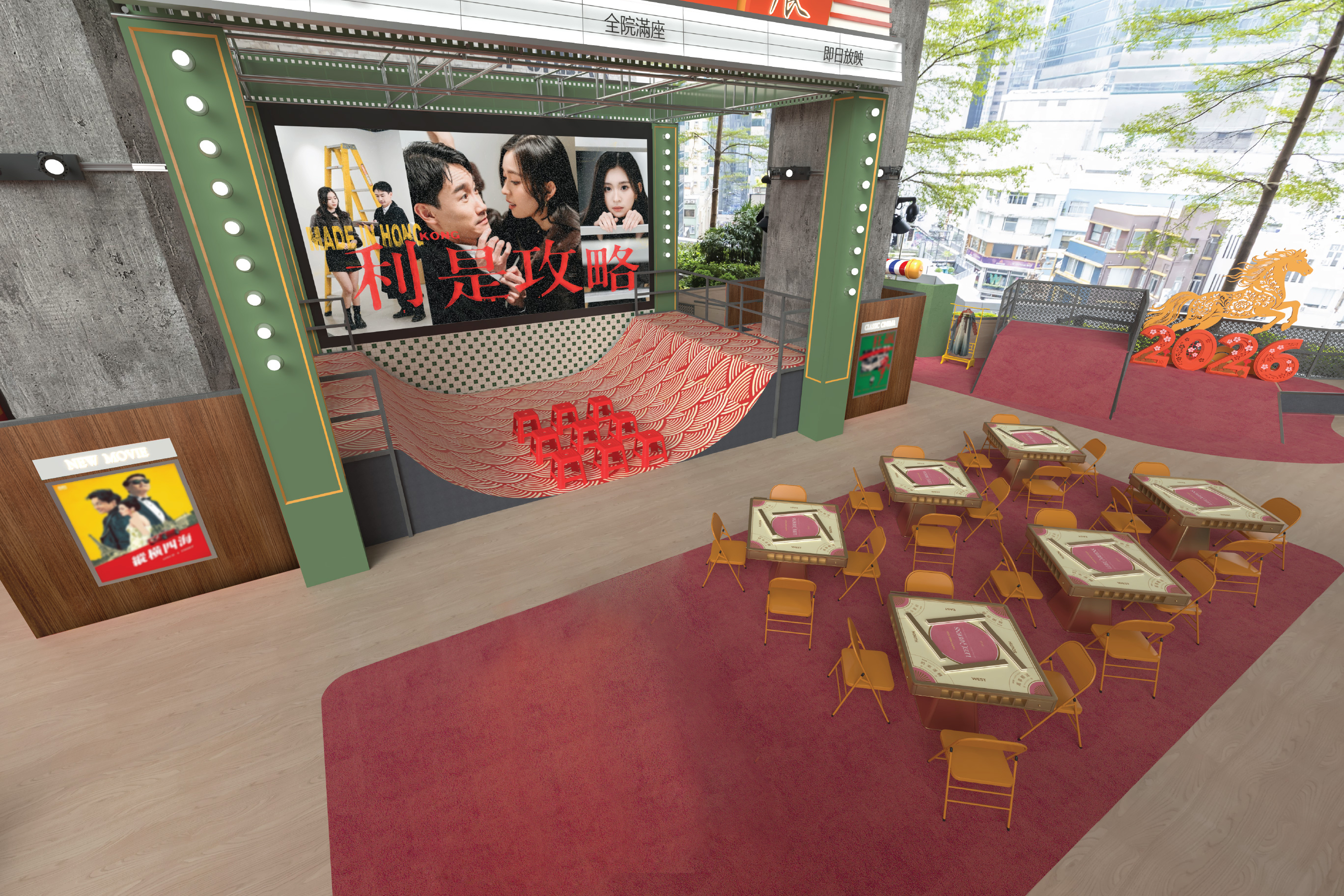 限定「利舞臺劇院」重現昔日街頭小食情懷,現場更可拍攝電影風格賀年海報!同場有多個以本港懷舊戲院作為主題的特色打卡位及多個互動體驗,包括電影海報自拍亭、麻將人足球機及輪盤求籤區為各位送上最獨特的新年慶祝!憑指定消費更有機會換取爆谷小食!