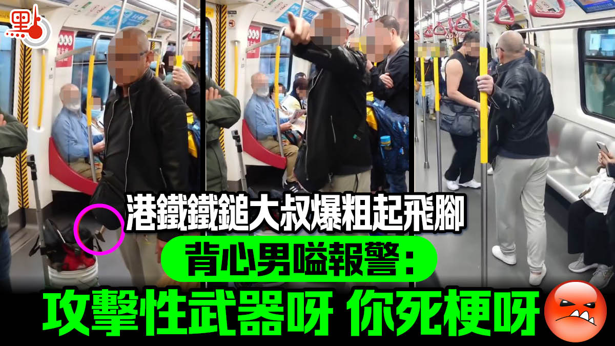 港鐵鐵鎚大叔爆粗起飛腳 背心男嗌報警:攻擊性武器呀 你死梗呀