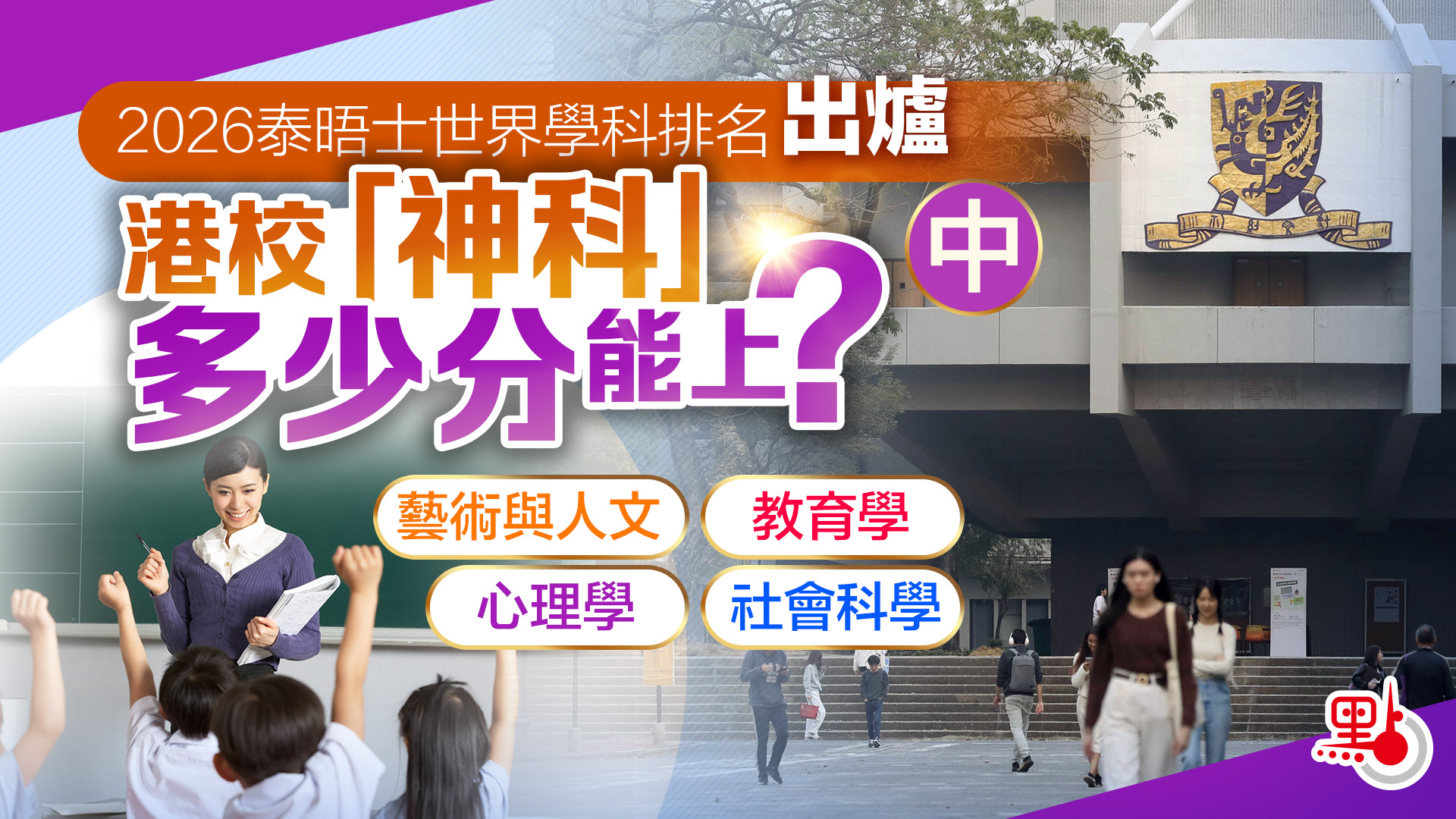 【點新聞報道】2026年泰晤士高等教育(THE)世界大學學科排名公布,本港多間院校創下佳績,部分學科更躋身全球前列。點教育特別整理各學科的港校排名,並精選廣受歡迎的王牌課程,看看入學門檻究竟幾何?