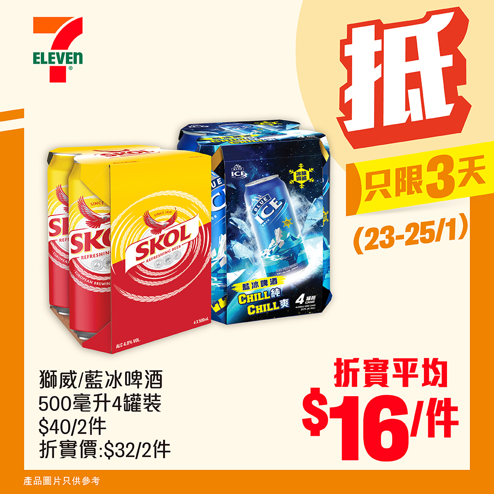 【點新聞報道】由即日起至1月25日,到7-Eleven買任何啤酒及指定零食 (包括卡樂B/品客/樂事/珍珍/多樂脆零食、Meadows薯片及IRVINS魚皮) 滿$100,即可以享有8折優惠。