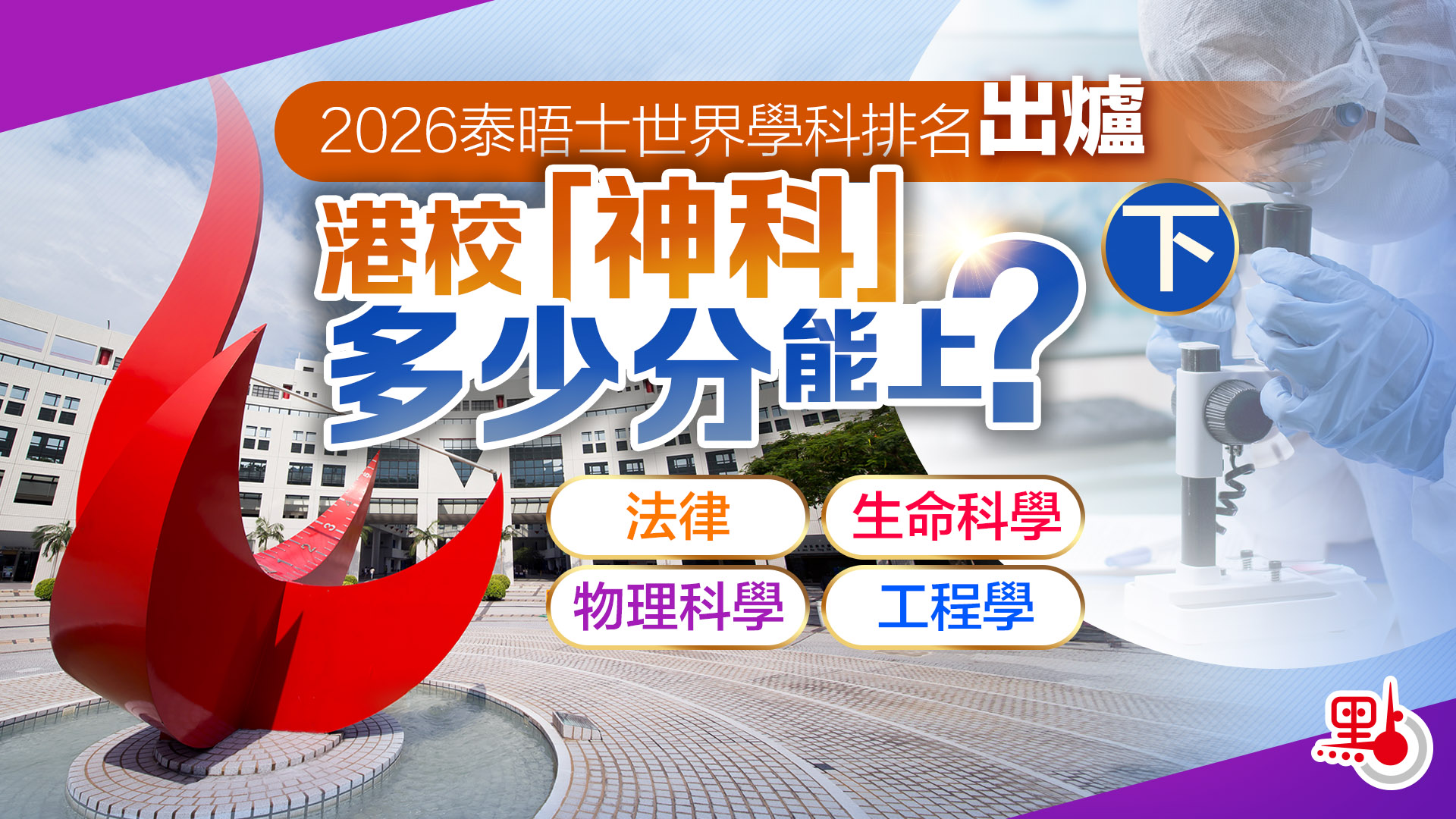 【點新聞報道】2026年泰晤士高等教育(THE)世界大學學科排名公布,本港多間院校創下佳績,部分學科更躋身全球前列。點教育特別整理各學科的港校排名,並精選廣受歡迎的王牌課程,看看入學門檻究竟幾何?