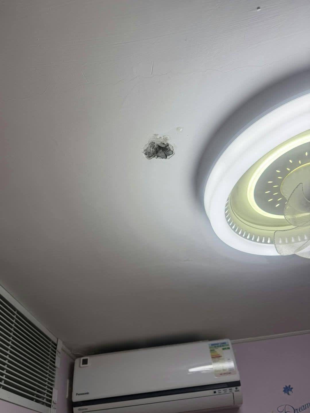 昨日下午,案發後有人在Facebook群組重提當日這宗案件,並上載兩張天花板損毁圖片,帖文指當日疑犯不單鑽穿天花板淋下一些臭水,據知相關液體為尿及煙灰水。